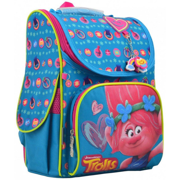 Шкільний каркасний рюкзак 1 Вересня 26х34х14 см 12 л для дівчаток H-11 Trolls turquoise (555162)