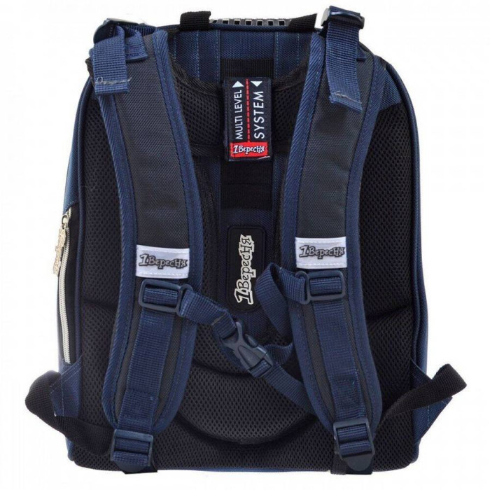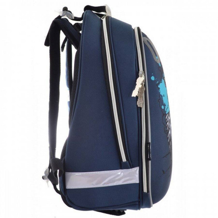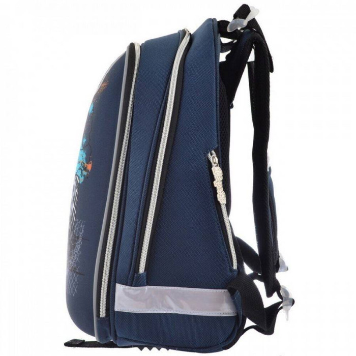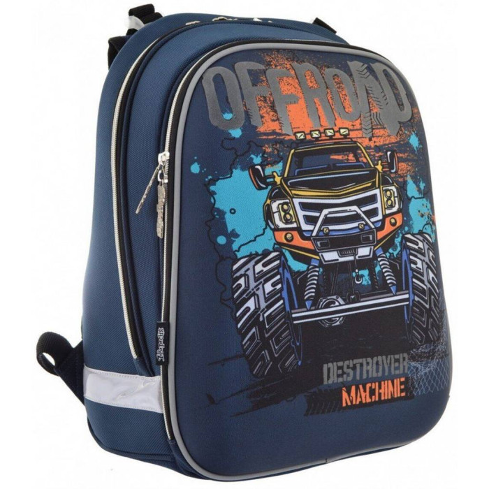 Особливості: виготовлений з поліестеру з водовідштовхувальним просоченням, що забезпечує збереження речей вашої дитини в будь-яку негоду, а щільний каркас гарантує повну цілісність вмісту (на лицьовій частині також є вставка з матеріалу EVA). Ортопедична спинка зменшує напругу м'язів спини, плечей і шиї, і забезпечує правильну поставу. Вона обшита "дихаючим" матеріалом Air Mesh. Також у рюкзака комфортні м'які лямки регульованої довжини (+нагрудний ремінь), щільне каркасне дно з двома гумовими ніжками, зручна прогумована ручка для носіння в руці. В цілях безпеки передбачені світловідбиваючі елементи з різних боків рюкзака.