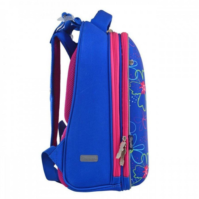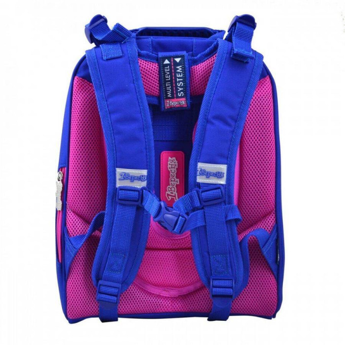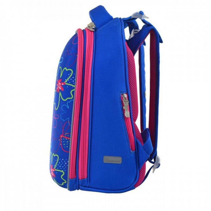 Особливості: виготовлений з поліестеру з водовідштовхувальним просоченням, що забезпечує збереження речей вашої дитини в будь-яку негоду, а щільний каркас гарантує повну цілісність вмісту (на лицьовій частині також є вставка з матеріалу EVA). Ортопедична спинка зменшує напругу м'язів спини, плечей і шиї, і забезпечує правильну поставу. Вона обшита "дихаючим" матеріалом Air Mesh. Також у рюкзака комфортні м'які лямки регульованої довжини (+нагрудний ремінь), щільне каркасне дно, зручна прогумована ручка для носіння в руці і м'яка ручка. В цілях безпеки передбачені світловідбиваючі елементи з різних боків рюкзака.