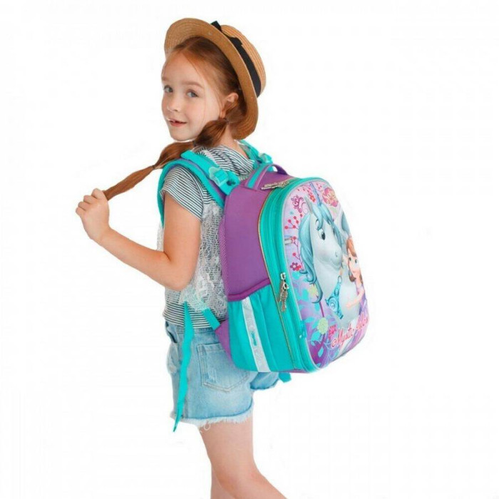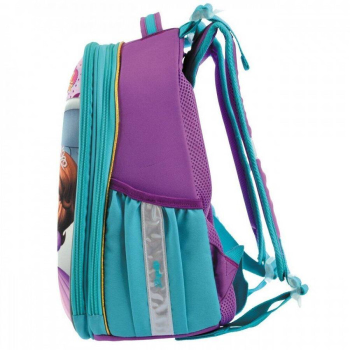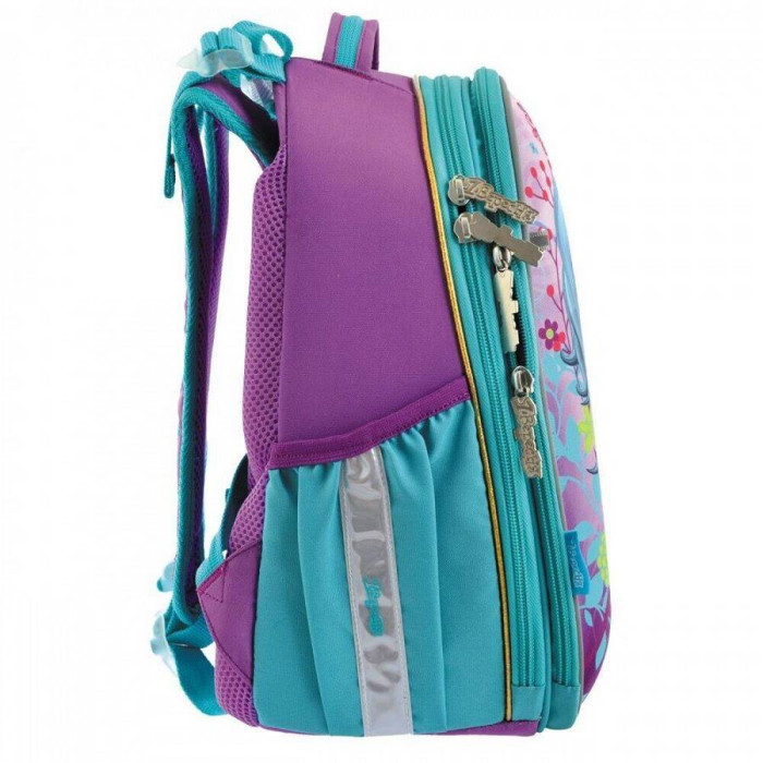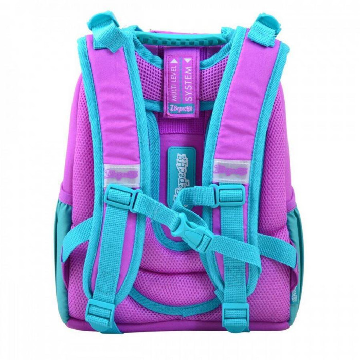 Особливості: виготовлений з поліестеру з водовідштовхувальним просоченням, що забезпечує збереження речей вашої дитини в будь-яку негоду, а щільний каркас гарантує повну цілісність вмісту (на лицьовій частині також є вставка з матеріалу EVA). Ортопедична спинка зменшує напругу м'язів спини, плечей і шиї, і забезпечує правильну поставу. Вона обшита "дихаючим" матеріалом Air Mesh. Також у рюкзака комфортні м'які лямки регульованої довжини (+нагрудний ремінь), щільне каркасне дно з захисними накладками, зручна ущільнена ручка для носіння в руці. В цілях безпеки передбачені світловідбиваючі елементи з різних боків рюкзака.