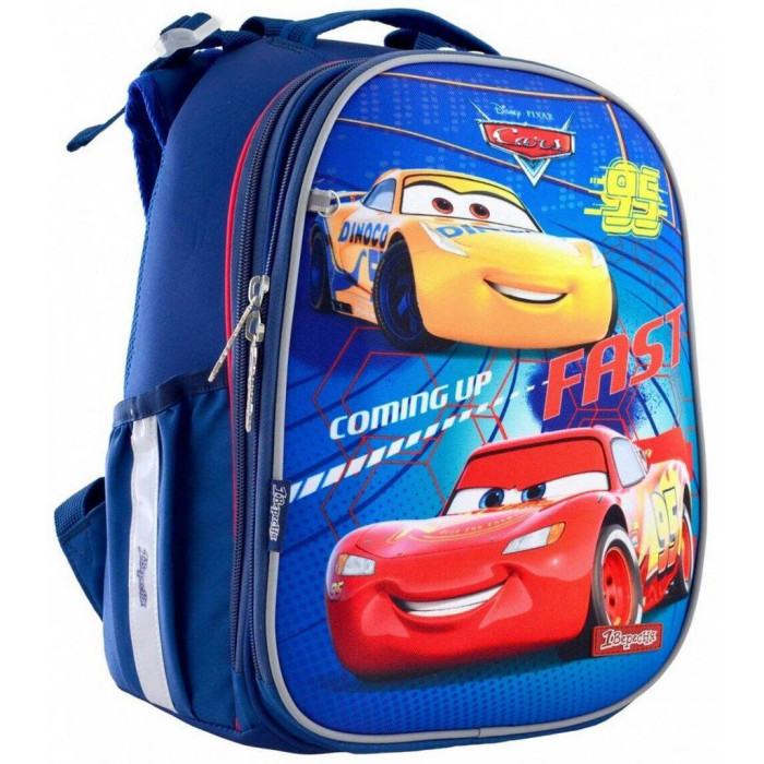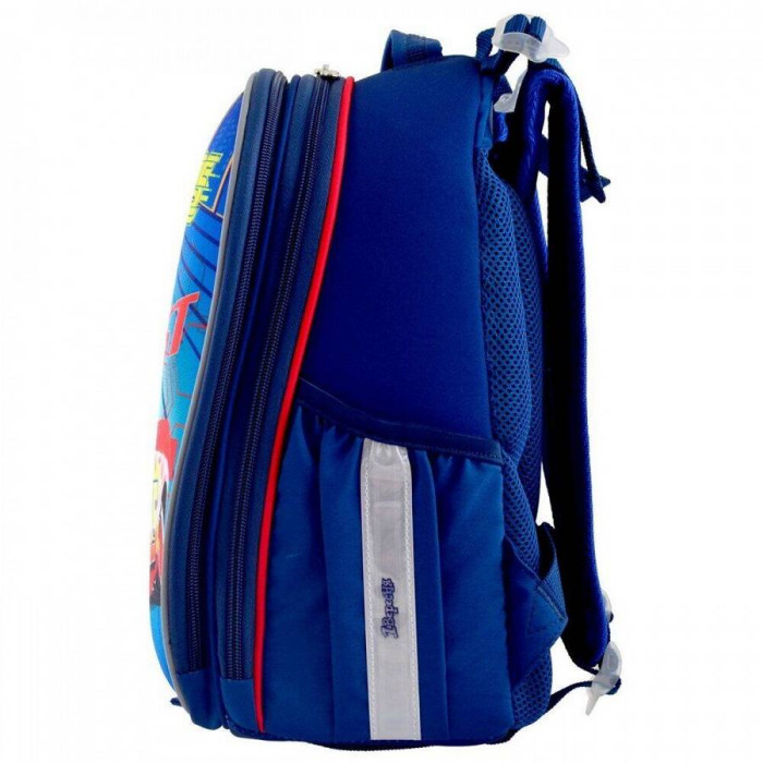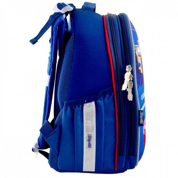 Особливості: виготовлений з поліестеру з водовідштовхувальним просоченням, що забезпечує збереження речей вашої дитини в будь-яку негоду, а щільний каркас гарантує повну цілісність вмісту (на лицьовій частині також є вставка з матеріалу EVA). Ортопедична спинка зменшує напругу м'язів спини, плечей і шиї, і забезпечує правильну поставу. Вона обшита "дихаючим" матеріалом Air Mesh. Також у рюкзака комфортні м'які лямки регульованої довжини (+нагрудний ремінь), щільне каркасне дно з захисними накладками, зручна ущільнена ручка для носіння в руці. В цілях безпеки передбачені світловідбиваючі елементи з різних боків рюкзака.