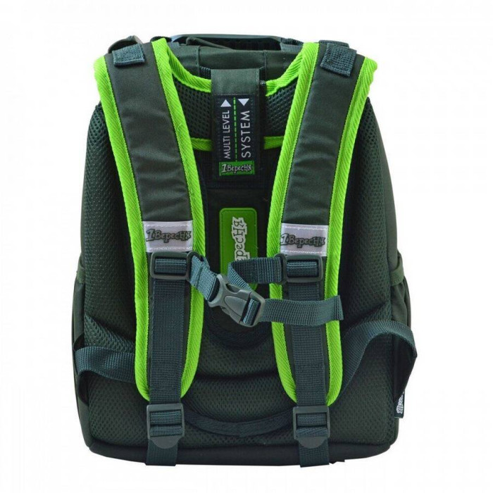 Особливості: виготовлений з поліестеру з водовідштовхувальним просоченням, що забезпечує збереження речей вашої дитини в будь-яку негоду, а щільний каркас гарантує повну цілісність вмісту (на лицьовій частині також є вставка з матеріалу EVA). Ортопедична спинка зменшує напругу м'язів спини, плечей і шиї, і забезпечує правильну поставу. Вона обшита "дихаючим" матеріалом Air Mesh. Також у рюкзака комфортні м'які лямки регульованої довжини (+нагрудний ремінь), щільне каркасне дно з захисними накладками, зручна ущільнена ручка для носіння в руці. В цілях безпеки передбачені світловідбиваючі елементи з різних боків рюкзака.