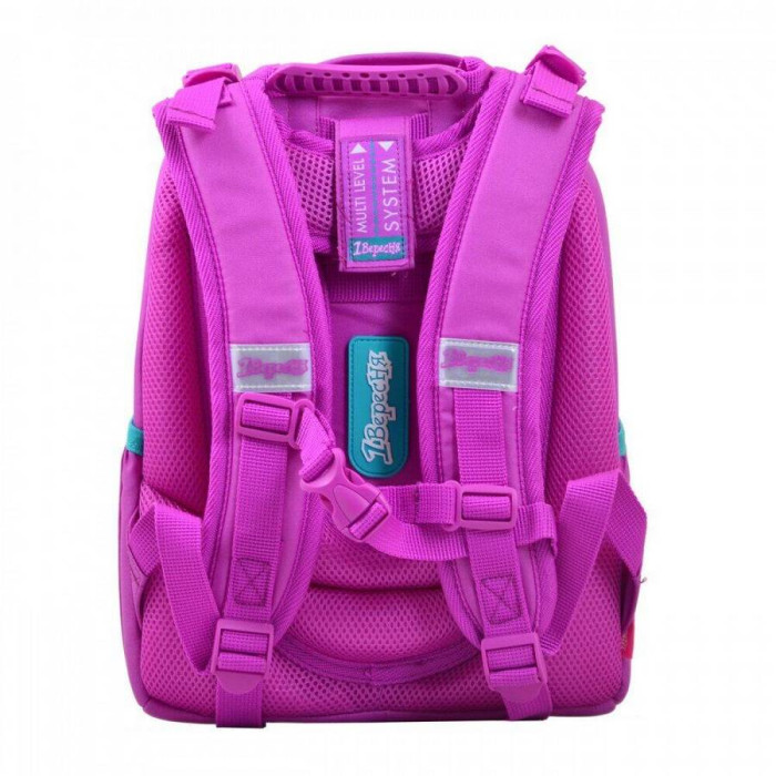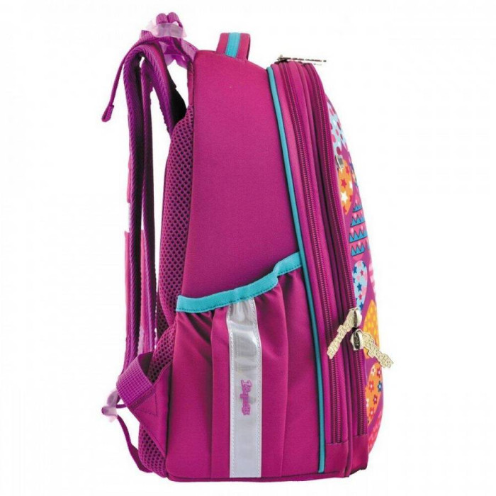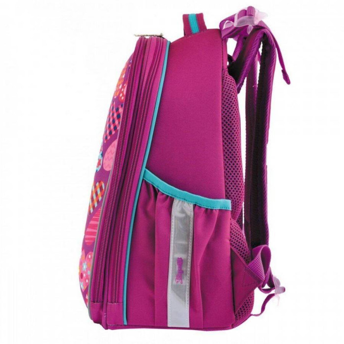 Особливості: виготовлений з поліестеру з водовідштовхувальним просоченням, що забезпечує збереження речей вашої дитини в будь-яку негоду, а щільний каркас гарантує повну цілісність вмісту (на лицьовій частині також є вставка з матеріалу EVA). Ортопедична спинка зменшує напругу м'язів спини, плечей і шиї, і забезпечує правильну поставу. Вона обшита "дихаючим" матеріалом Air Mesh. Також у рюкзака комфортні м'які лямки регульованої довжини (+нагрудний ремінь), щільне каркасне дно з захисними накладками, зручна ущільнена ручка для носіння в руці. В цілях безпеки передбачені світловідбиваючі елементи з різних боків рюкзака.