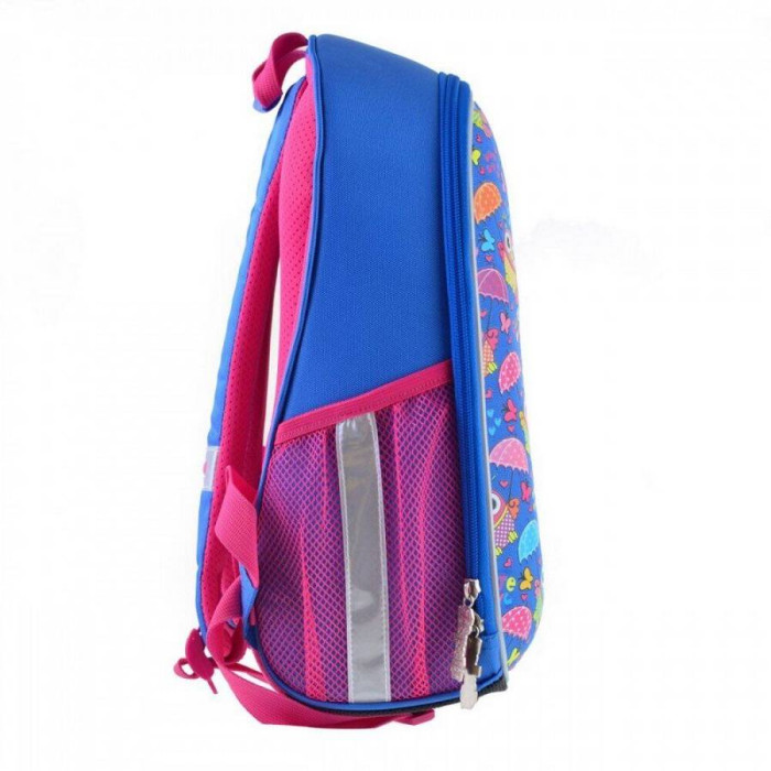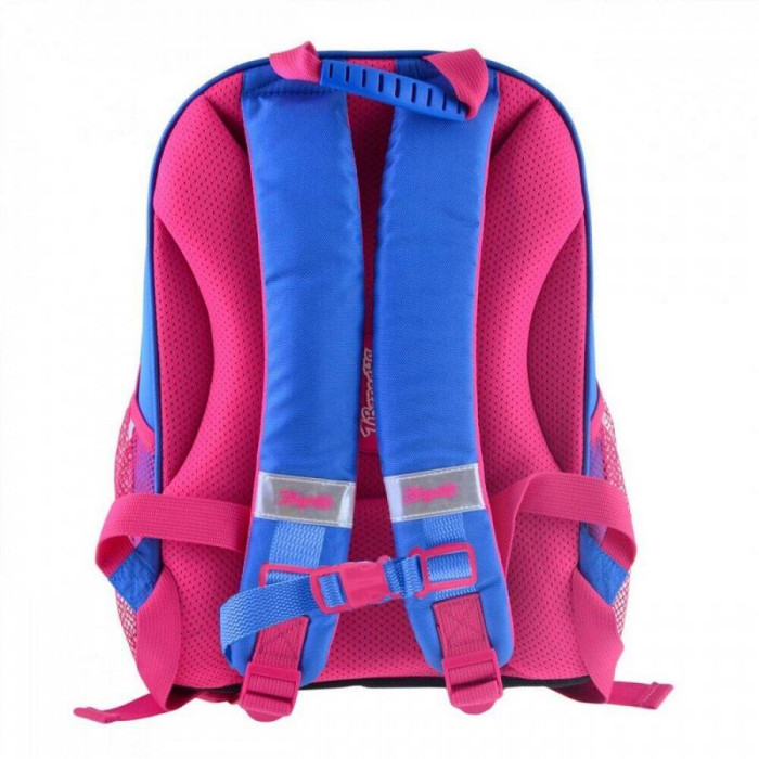 Особливості: виготовлений з поліестеру з водовідштовхувальним просоченням, що забезпечує збереження речей вашої дитини в будь-яку негоду, а щільний каркас гарантує повну цілісність вмісту. Ортопедична спинка зменшує напругу м'язів спини, плечей і шиї, і забезпечує правильну поставу. Вона обшита "дихаючим" матеріалом Air Mesh. Також у рюкзака комфортні м'які лямки регульованої довжини (+нагрудний ремінь), щільне каркасне дно з захисними накладками, зручна ущільнена ручка для носіння в руці, брендована підкладка і практична металева фурнітура. В цілях безпеки передбачені світловідбиваючі елементи з різних боків рюкзака.