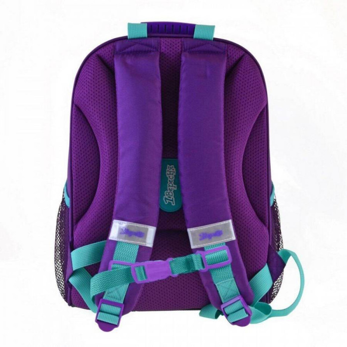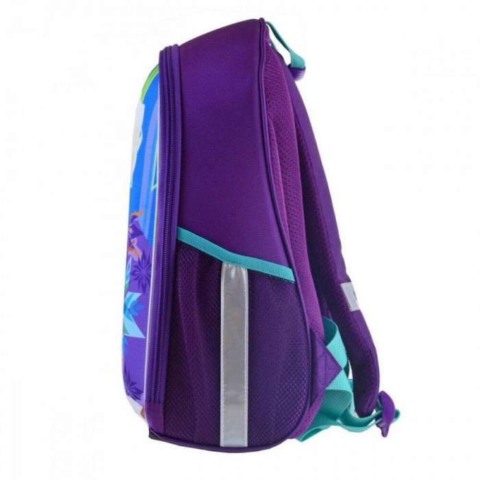 Особливості: виготовлений з поліестеру з водовідштовхувальним просоченням, що забезпечує збереження речей вашої дитини в будь-яку негоду, а щільний каркас гарантує повну цілісність вмісту. Ортопедична спинка зменшує напругу м'язів спини, плечей і шиї, і забезпечує правильну поставу. Вона обшита "дихаючим" матеріалом Air Mesh. Також у рюкзака комфортні м'які лямки регульованої довжини (+нагрудний ремінь), щільне каркасне дно з захисними накладками, зручна ущільнена ручка для носіння в руці, брендована підкладка і практична металева фурнітура. В цілях безпеки передбачені світловідбиваючі елементи з різних боків рюкзака.