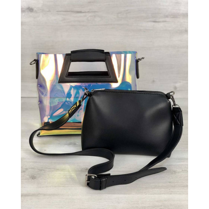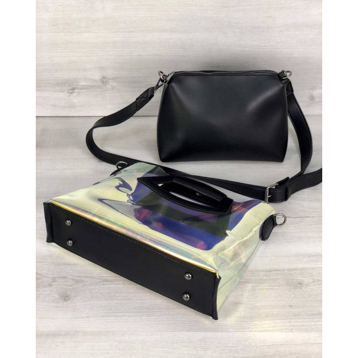 2в1 Молодіжна Перламутрова силіконова сумка Віта з чорним WeLassie