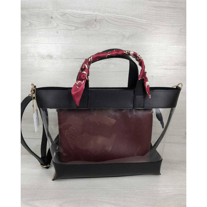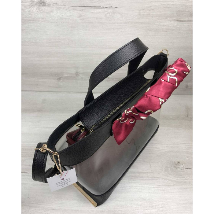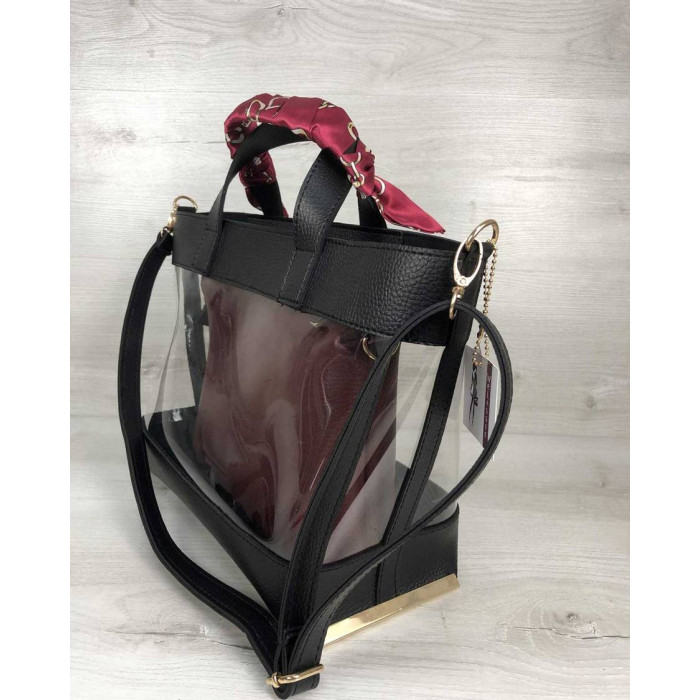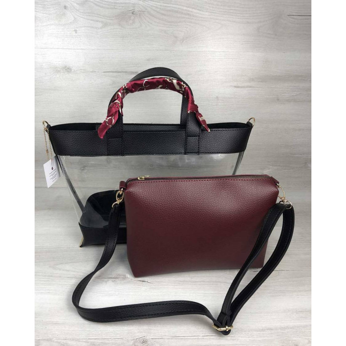 2в1 Молодіжна сумка Аміра чорного кольору з силіконом і бордової косметичкою WeLassie