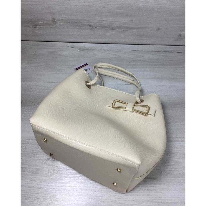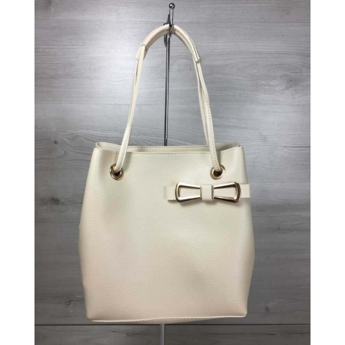 Жіноча, молодіжна сумка Бантик, виготовлена з штучної шкіри. Має одне відділення на блискавці. Всередині косметичка на застібці. Ручки міцні - висота їх розрахована, щоб носити сумку в руці або на згині ліктя. В комплекті є регульований плечовий ремінець довжиною 140 см, що дозволяє носити сумку на плечі і через плече. Внизу сумки 4 хольнитени.