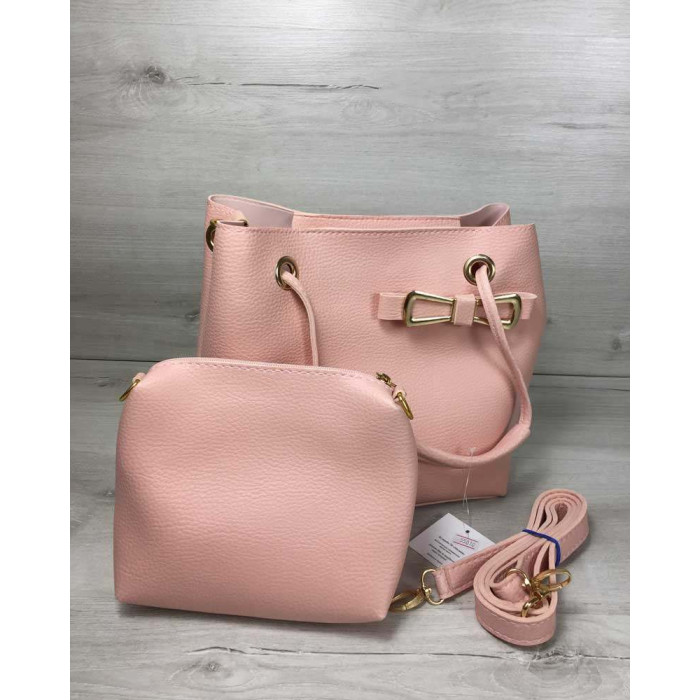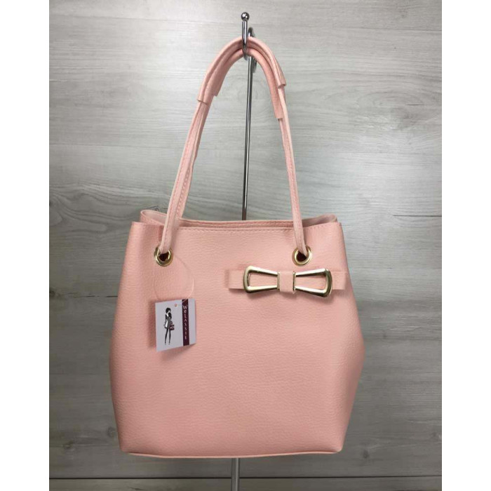Жіноча, молодіжна сумка Бантик, виготовлена з штучної шкіри. Має одне відділення на блискавці. Всередині косметичка на застібці. Ручки міцні - висота їх розрахована, щоб носити сумку в руці або на згині ліктя. В комплекті є регульований плечовий ремінець довжиною 140 см, що дозволяє носити сумку на плечі і через плече. Внизу сумки 4 хольнитени.