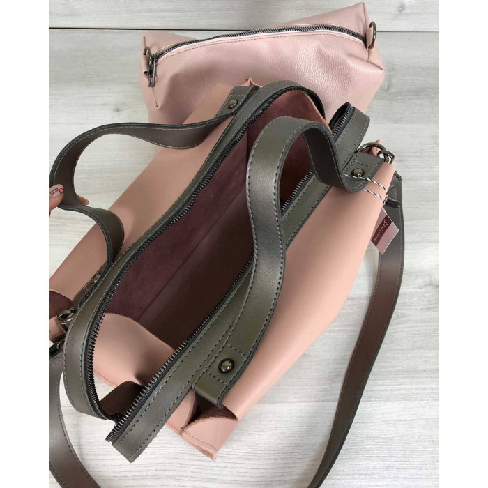 Всередині є косметичка на підкладці і має дві кишені: на блискавці і відкриту під телефон. Має з боків два півкільця завдяки чому косметичку можна використовувати як окрему сумку (в поєднанні з плечовим ременем основної сумки).