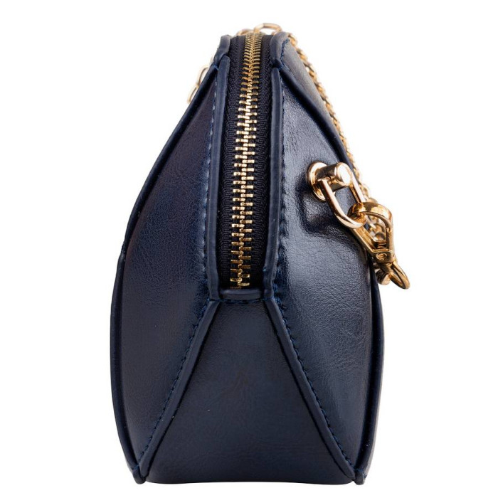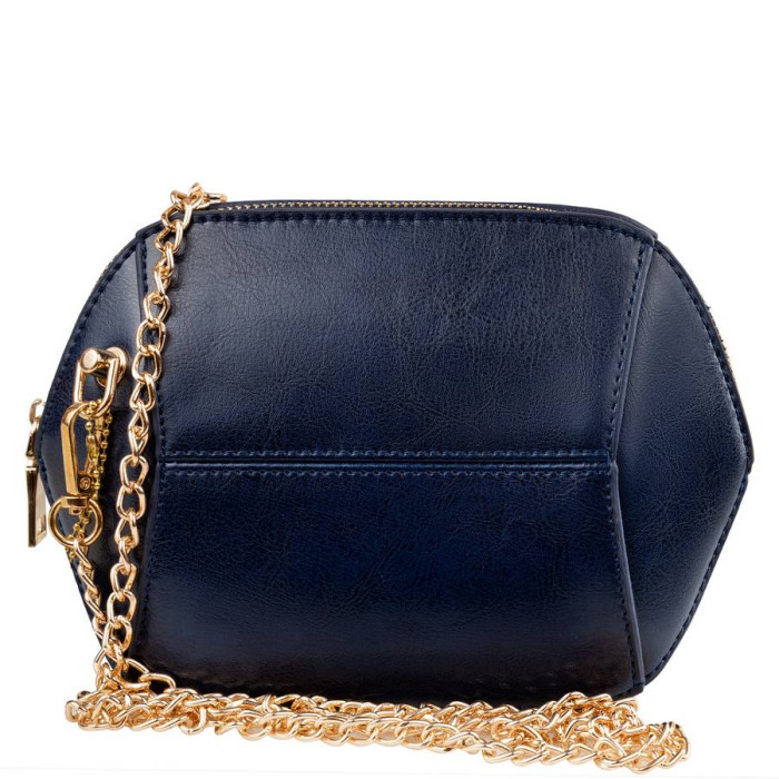 Розміри (X*Y*Z): 16 (замір по дну) *14,5*7 див Матеріал виробу: шкіра. Матеріал підкладки: тканина. Колір: синій. Колір фурнітури: золото. Кількість основних відділень: 1. Всередині є прорізна кишеня на блискавці. У комплект входить плечовий ремінь-ланцюжок, довжина якого становить 140 см. Аксесуар придатний для носіння на плечі, через плече. Клатч закривається за допомогою блискавки. Клатч має жорсткий каркас. Документи формату А4 не поміщаються у виробі. Виріб упаковано в поліетиленовий пакет. Країна походження ТМ ETERNO - Україна, а країна-виробник - Китай. Гарантія: 3 місяці.