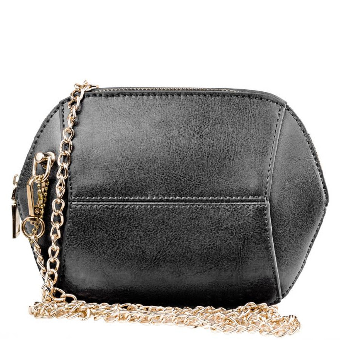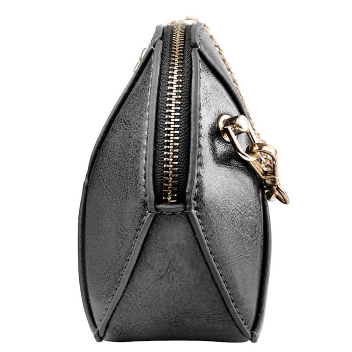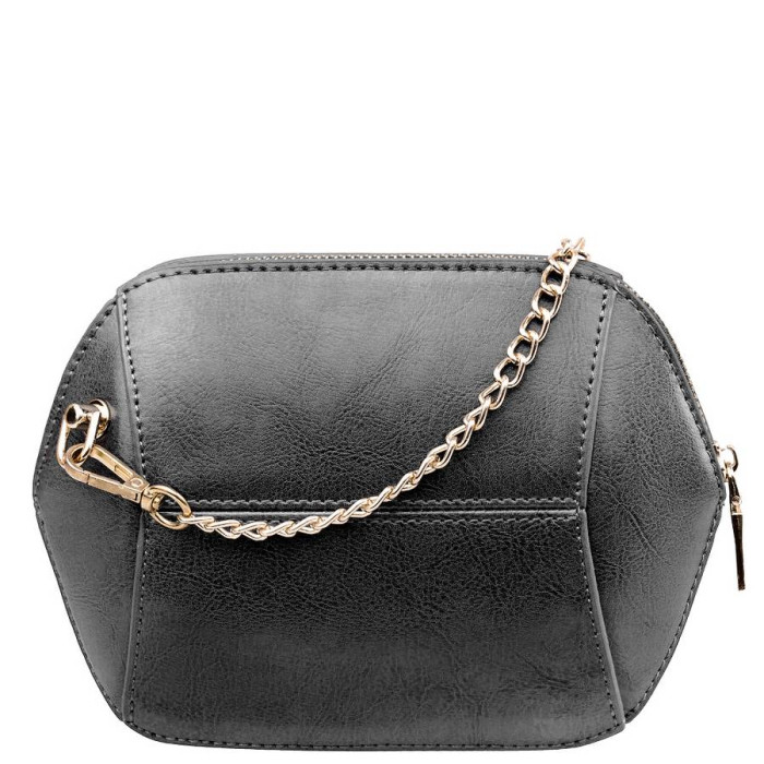Розміри (X*Y*Z): 16 (замір по дну) *14,5*7 див Матеріал виробу: шкіра. Матеріал підкладки: тканина. Колір: сірий. Колір фурнітури: золото. Кількість основних відділень: 1. Всередині є прорізна кишеня на блискавці. У комплект входить плечовий ремінь-ланцюжок, довжина якого становить 140 см. Аксесуар придатний для носіння на плечі, через плече. Клатч закривається за допомогою блискавки. Клатч має жорсткий каркас. Документи формату А4 не поміщаються у виробі. Виріб упаковано в поліетиленовий пакет. Країна походження ТМ ETERNO - Україна, а країна-виробник - Китай. Гарантія: 3 місяці.