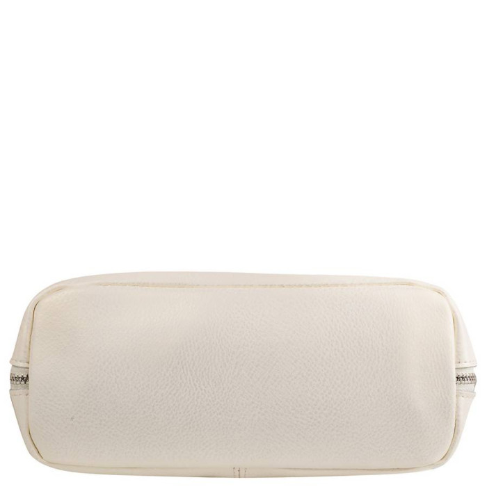 Розміри: 22 (замір по дну) *22*9 см. Матеріал виробу: шкіра. Матеріал підкладки: тканина. Колір: білий. Колір фурнітури: срібло. Кількість основних відділень: 1. Всередині є 1 накладна кишеня і 1 прорізна кишеня на блискавці. Виріб має 2 бічних кишені на блискавці. На тильній стороні виробу розташована прорізна кишеня на блискавці. У комплект до виробу входить знімний плечовий ремінь. Його довжина регулюється (максимально - 126 см). Дно сумки ущільнена. Аксесуар придатний для носіння в руці, на плечі, через плече. Сумка закривається за допомогою блискавки. Документи формату А4 не поміщаються у виробі. Виріб упаковано в поліетиленовий пакет. Країна походження ТМ Eterno — Україна, а країна-виробник - Китай. Гарантія: 3 місяці.