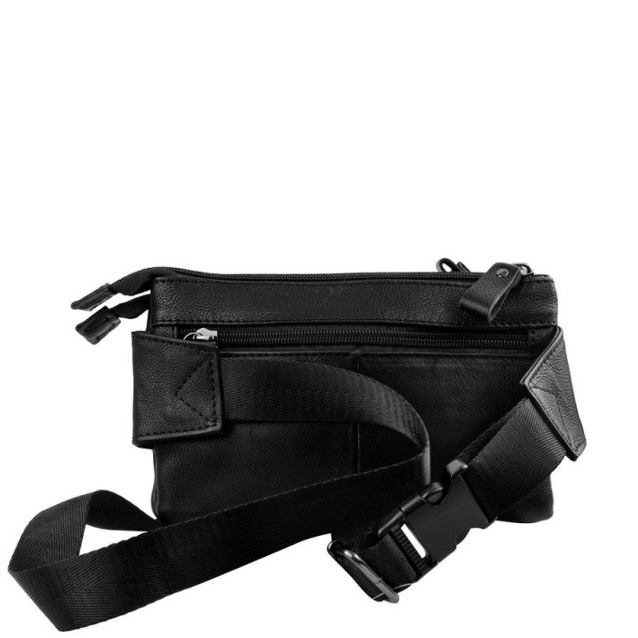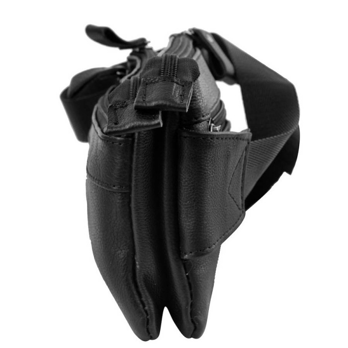 Зовнішні розміри сумки: 21 * 13 * 2 см. Матеріал шкіра. Колір чорний. Колір фурнітури: чорне срібло. Кількість основних відділень: 2. Всередині є прорізна кишеня на блискавки. На лицьовій стороні сумки розташована кишеня на блискавці. На тильній стороні сумки знаходиться 1 прорізна кишеня на блискавки. Сумка має поясний ремінь регульованої довжини (максимально - 101 см). Сумка закривається за допомогою блискавки. Аксесуар можна носити на поясі. Виріб упаковано в поліетиленовий пакет. Документи формату А4 не поміщаються в сумку. Країна походження торгової марки ETERNO - Україна, а країна-виробник - Китай. Гарантія: 3 місяці.