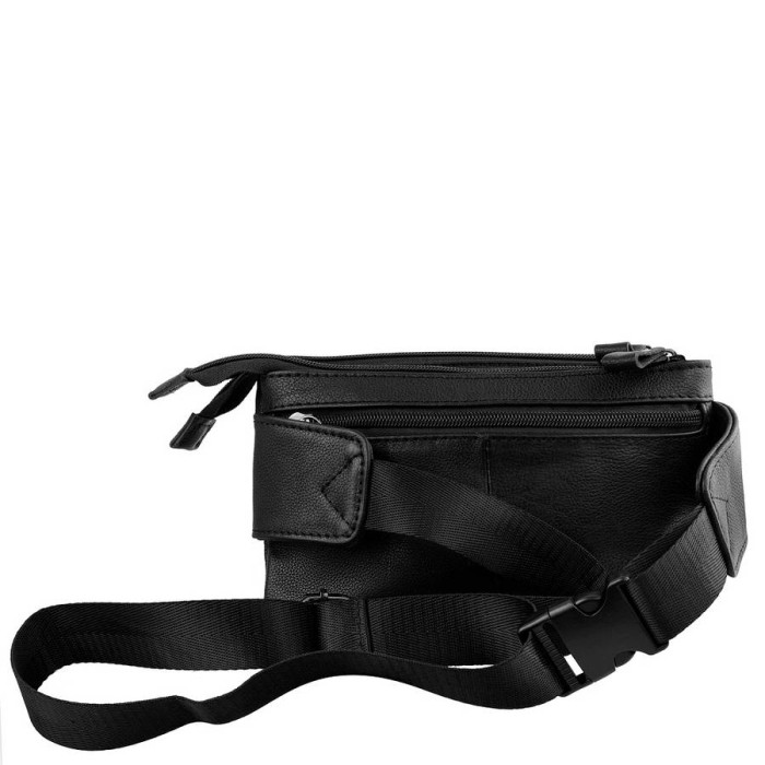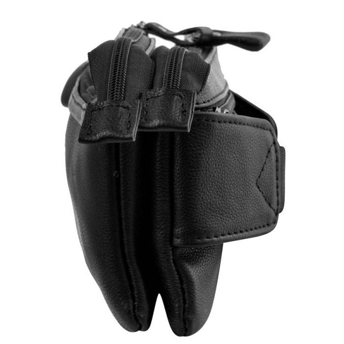 Зовнішні розміри сумки: 21*13*2 см. Матеріал: шкіра. Колір: чорний. Колір фурнітури: чорне срібло. Кількість основних відділень: 2. Всередині є прорізна кишеня на блискавці. На лицьовій стороні сумки розташована кишеня на блискавці. На тильній стороні сумки знаходиться 1 прорізна кишеня на блискавці. Сумка має поясний ремінь регульованої довжини (максимально - 101 см). Сумка закривається за допомогою блискавки. Аксесуар можна носити на поясі. Виріб упаковано в поліетиленовий пакет. Документи формату А4 не поміщаються в сумку. Країна походження торгової марки ETERNO - Україна, а країна-виробник - Китай. Гарантія: 3 місяці.