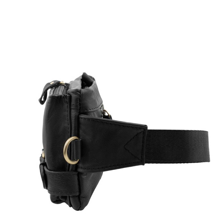 Зовнішні розміри сумки: 24*12*4 см. Матеріал: шкіра. Колір: чорний. Колір фурнітури: бронза. Кількість основних відділень: 1. Всередині є прорізна кишеня на блискавці. На лицьовій стороні сумки розташовано дві накладних кишені на блискавці, другий — на магнітній застібці. На тильній стороні сумки знаходиться 1 прорізна кишеня на блискавці. Сумка має поясний ремінь регульованої довжини (максимально - 104 см). Сумка закривається за допомогою блискавки. Аксесуар можна носити на поясі. Виріб упаковано в поліетиленовий пакет. Документи формату А4 не поміщаються в сумку. Країна походження торгової марки ETERNO - Україна, а країна-виробник - Китай. Гарантія: 3 місяці.