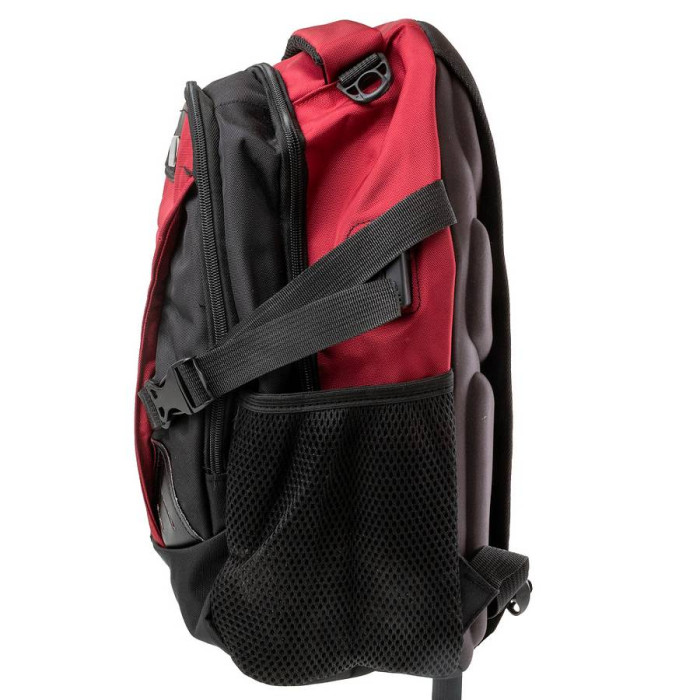Зовнішні розміри рюкзака: 27 * 39 *14 см. Об'єм: 16 л. Колір: бордовий, чорний. Колір металевої фурнітури: чорний. Матеріал: поліестер (тканина). Кількість основних відділень: 2. Всередині є кишеня для ноутбука і накладна кишеня-сітка на блискавці. Рюкзак оснащений двома боковими прорізними кишенями із сітки. Виріб має 2 компресійні стяжки, які служать для зміни обсягу моделі і кріплення/фіксації різних предметів. Плечові лямки мають анатомічну форму. Вони забезпечені щільною підкладою з поропласту, обтягнутого сіткою 3D airmesh, яка не перешкоджає вільній циркуляції повітря. Довжина лямок може регулюватися за допомогою металевих пряжок. На спинці рюкзака є анатомічна подушка з поролону. Виріб має 2 окремі ручки, за допомогою яких аксесуар можна переносити в руці або повісити на гачок або вішалку. Модель можна використовувати в якості міського рюкзака, для активного відпочинку, для нетривалих поїздок та походів вихідного дня. Рюкзак закривається за допомогою блискавки. Виріб упаковано в поліетиленовий пакет. Документи формату А4 поміщаються в рюкзак. Країна походження ТМ Valiria Fashion, а також країна-виробник - Китай.