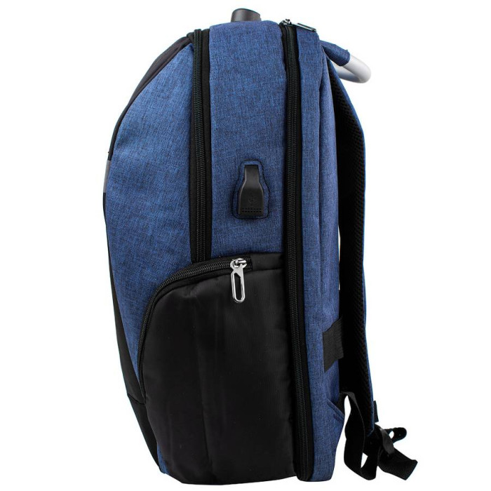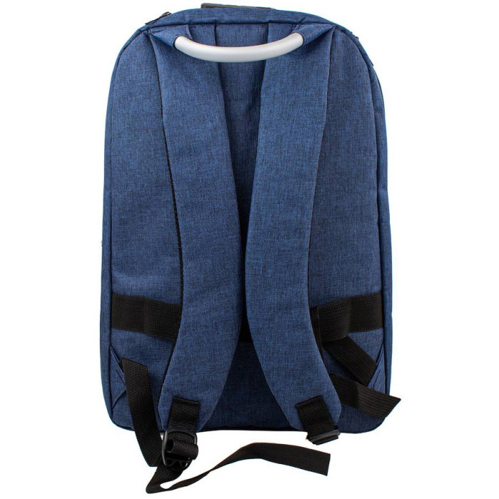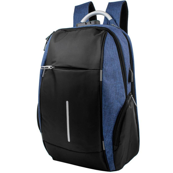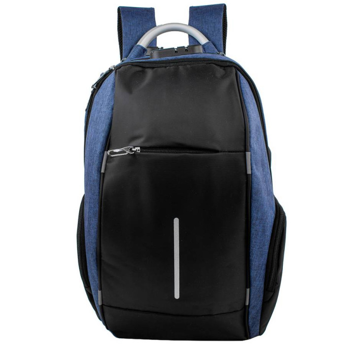 Зовнішні розміри рюкзака: 30*45*18 см. Об'єм: 24 л. Вага: 710 р. Матеріал: тканина. Колір: синій, чорний. Колір фурнітури: чорне срібло. Тип конструкції: м'який рюкзак. Кількість основних відділень: 2. Всередині є велика накладна кишеня для ноутбука (фіксується шлейкой на липучці) і 3 невеликих накладних кишені з сіткою. Рюкзак оснащений двома бічними кишенями на блискавці. На лицьовій стороні рюкзака є 1 прорізна кишеня на блискавці. На спинці є ремінь для кріплення рюкзака до ручки дорожньої валізи. Плечові лямки мають анатомічну форму. Вони забезпечені щільною підкладкою з поропласту, їх тильна сторона виконана з сітчастого матеріалу 3D-airmash, який не перешкоджає вільній циркуляції повітря. Довжина лямок може регулюватися за допомогою пластикових пряжок. Виріб має зручну щільну ручку, за допомогою якої аксесуар можна переносити в руці або повісити на гачок або вішалку. Рюкзак закривається за допомогою блискавки, також є кодовий замок. Модель можна використовувати в якості міського рюкзака, для активного відпочинку, для нетривалих поїздок та походів вихідного дня. Виріб упаковано в поліетиленовий пакет. Документи формату А4 поміщаються в рюкзак. Країна походження торгової марки VALIRIA FASHION країна-виробник - Китай. Гарантія: 1 місяць.