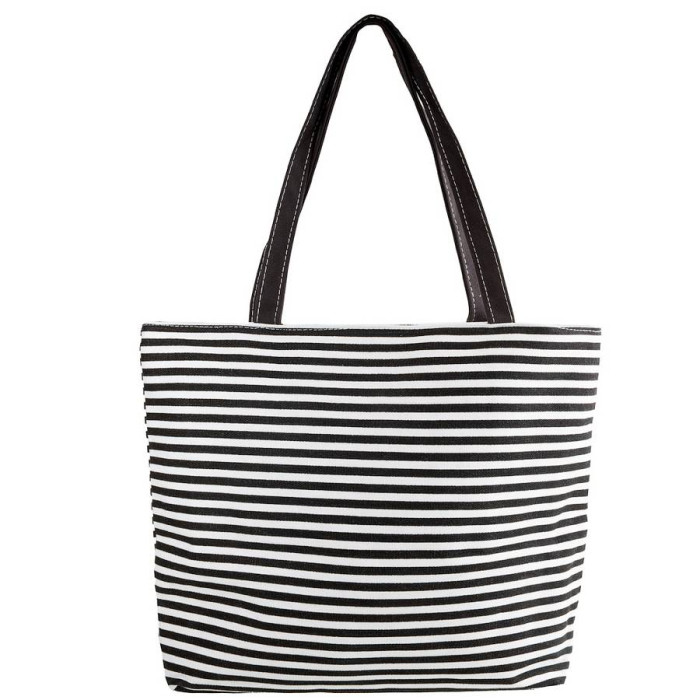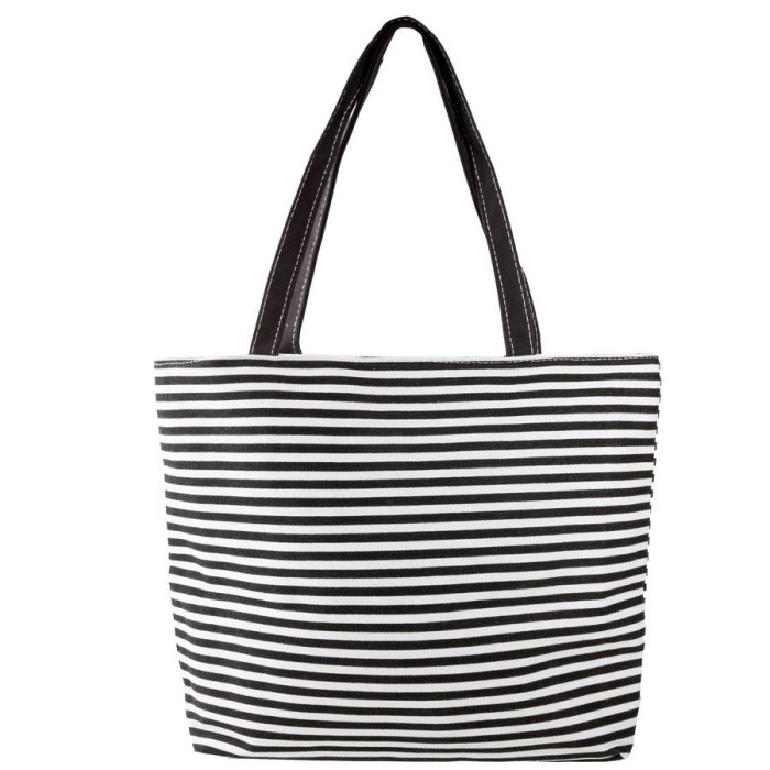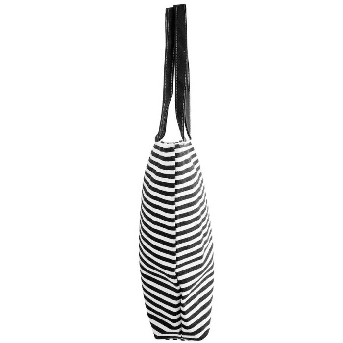 Розміри (X*Y*Z): 43 (замір зроблений по верхній частині, ширина по дну - 34 см)*32*7 див Колір: біло-чорна смужка. Колір фурнітури: срібло. Матеріал виробу: щільний текстиль. Матеріал підкладки: щільна тканина. Виріб має дві ручки для перенесення моделі в руці або на плечі. Їх довжина становить 59 см, а висота від крайньої точки до ручки сумки - 25 см. Кількість основних відділень: 1. Всередині є прорізна кишеня на блискавці. Аксесуар придатний для носіння в руці, на згині ліктя, на плечі. Сумка закривається за допомогою блискавки. Документи формату А4 поміщаються у аксесуар. Виріб упаковано в поліетиленовий пакет. Країна походження ТМ Valiria Fashion, а також країна-виробник - Китай. Гарантія: 1 місяць.