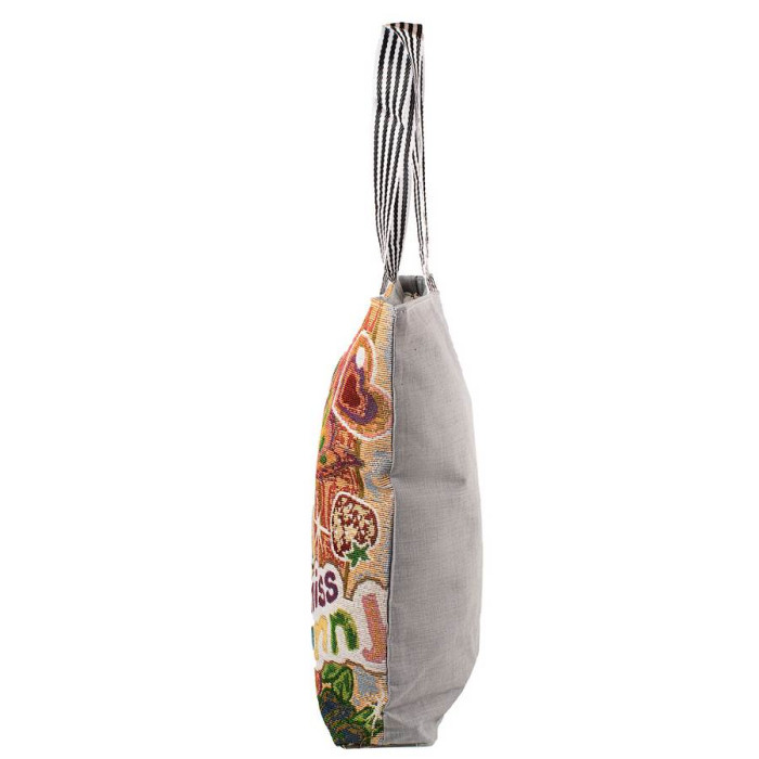 Розміри (X*Y*Z):37 (замір по дну, у верхній частині – 44,5)*37,5*10 см. Кількість основних відділень:1. Всередині є невелика кишеня на блискавці. Колір:різнобарвний. Колір фурнітури:срібло. Матеріал виробу:щільний текстиль. Матеріал підкладки:тканина. Гарантія:1 місяць. Виріб має двіручкидля перенесення моделі в руці або на плечі. Їх довжина становить 53 см, а висота від крайньої точки до ручки сумки - 24 см. Аксесуар придатний для носіння в руці, на згині ліктя, на плечі. Сумка закривається за допомогоюблискавки. Документи форматуА4 поміщаютьсяу аксесуар. Виріб упаковано в поліетиленовий пакет. Країна походженняТМ Valiria Fashion, а також країна-виробник - Китай.