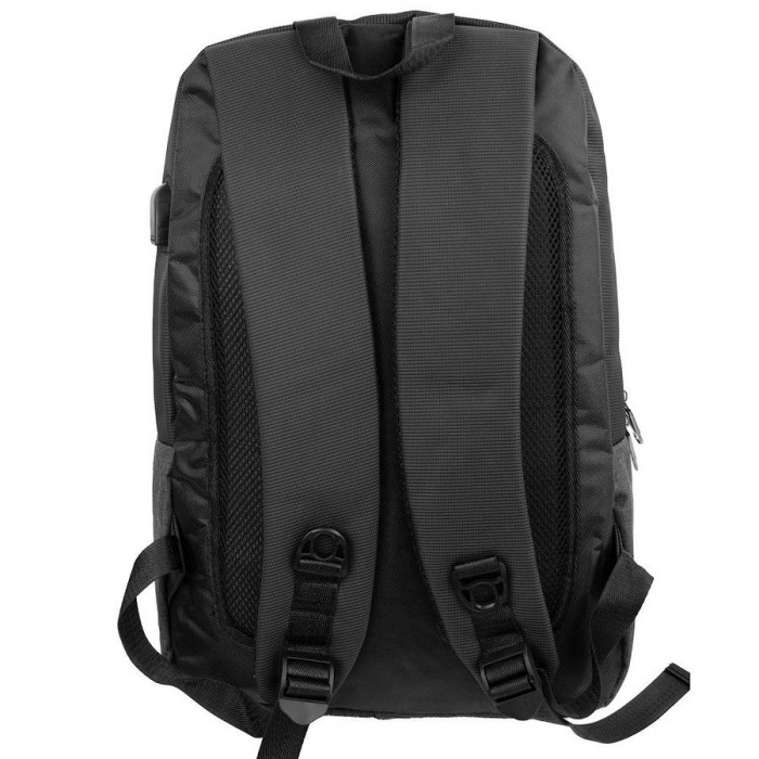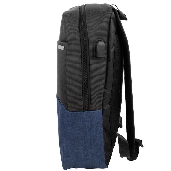 Зовнішні розміри рюкзака: 32 х 45 х 11,5 см. Обсяг без урахування кишень: 16,5 л. Вага: 585 г. Матеріал: поліестер (тканину). Колір: синій, чорний. Колір фурнітури: чорне срібло. Тип конструкції: м'який рюкзак. Кількість основних відділень: 1. Всередині є велика накладна кишеня для ноутбука (закривається на шлею з липучкою), 2 накладних кишені і 2 відділення для ручок. Гарантія: 1 місяць. На лицьовій стороні рюкзака перебуває 1 накладна кишеня без застібки, і 1 кишеня на блискавці. Спинка рюкзака виконана з анатомічними ділянками з поропласту і сітки 3D airmesh. Плечові лямки мають анатомічну форму. Вони забезпечені щільною підкладали з поропласту, а їх тильна сторона виконана з сітки 3D airmesh, яка не перешкоджає вільної циркуляції повітря. Довжина лямок може регулюватися за допомогою пластикових пряжок. Виріб має тканинну петлю, за допомогою якої аксесуар можна переносити в руці або повісити на гачок. Рюкзак закривається за допомогою блискавки. Модель можна використовувати в якості міського рюкзака, для активного відпочинку, для нетривалих поїздок і походів вихідного дня. Виріб упаковано в поліетиленовий пакет. Документи формату А4 поміщаються в рюкзак. Країна походження торгової марки VALIRIA FASHION, а також країна-виробник - Китай.