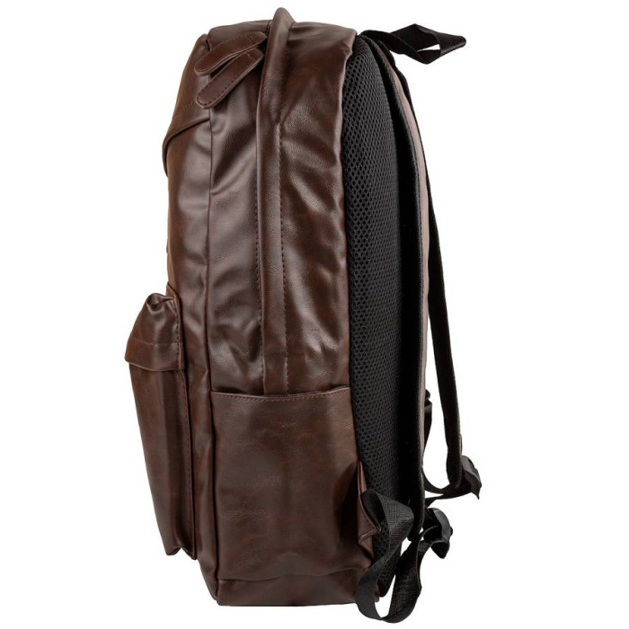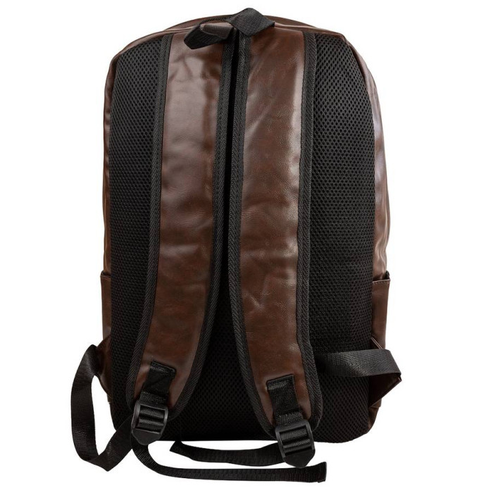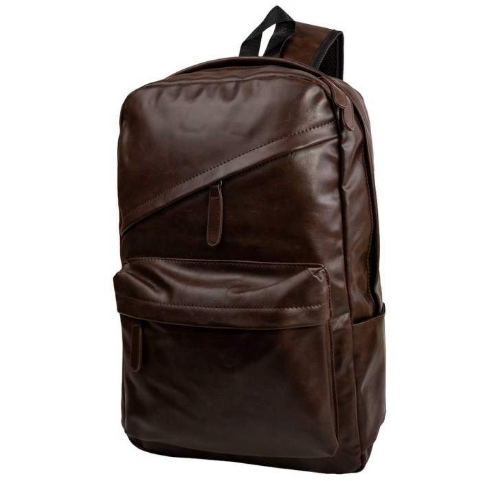 Зовнішні розміри рюкзака: 30*43*18 см. Об'єм: 23 л. Вага: 590 р. Матеріал: шкірзамінник. Колір: коричневий. Колір фурнітури: чорне срібло. Тип конструкції: м'який рюкзак. Кількість основних відділень: 1. Всередині є відділення для ноутбука. На лицьовій стороні розташований 1 накладна кишеня на блискавці і 1 прорізна кишеня на блискавці. Виріб має дві бічні накладні кишені. Спинка рюкзака виконана з використанням анатомічної подушки з поропласту, з сітчастим матеріалом 3D airmesh, який не перешкоджає вільній циркуляції повітря. Плечові лямки забезпечені щільною підкладкою з поропласту, а їх тильна сторона виконана з сітки 3D airmesh. Довжина лямок може регулюватися за допомогою пластикових пряжок. Також виріб має зручну ручку, за допомогою якої аксесуар можна переносити в руці і повісити на гачок. Рюкзак закривається за допомогою блискавки. Виріб упаковано в поліетиленовий пакет. Документи формату А4 поміщаються в рюкзак. Країна походження торгової марки VALIRIA FASHION країна-виробник - Китай. Гарантія: 1 місяць.
