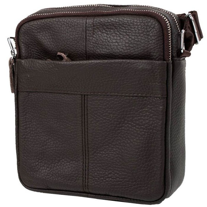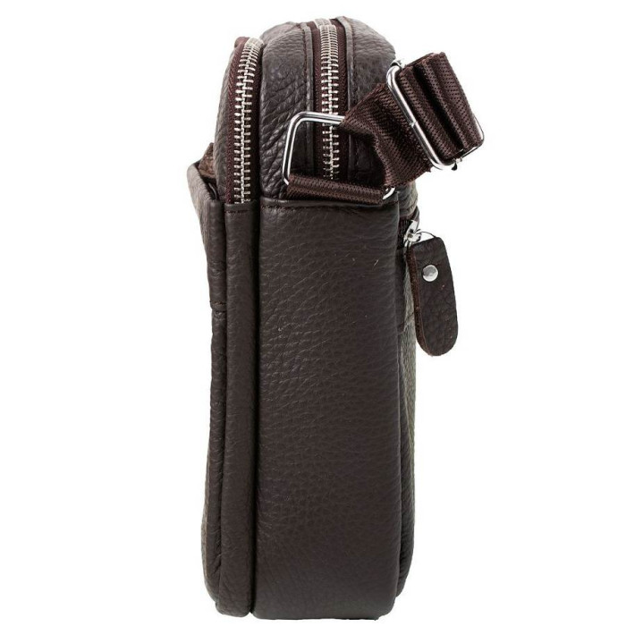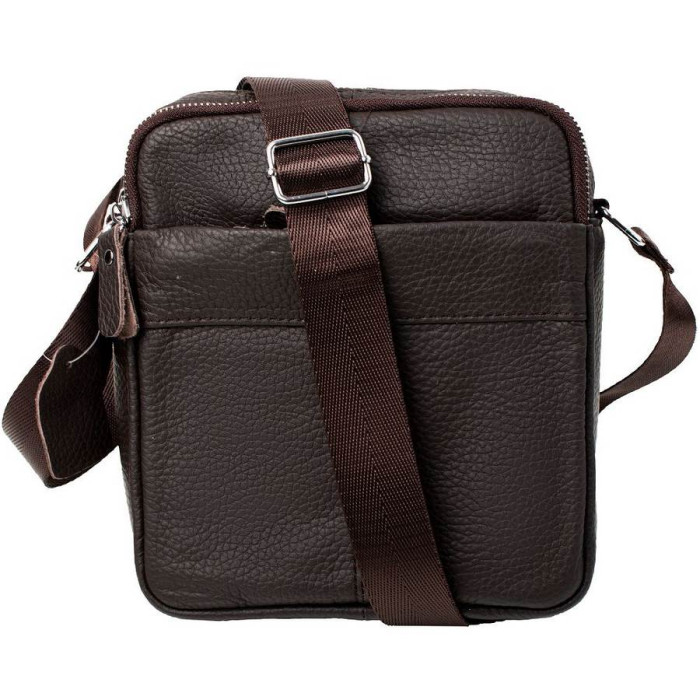 Розміри (X * Y * Z): 18 х 21 х 7 см. Колір: коричневий. Колір фурнітури: срібло. Матеріал: шкіра. Матеріал підкладки: тканину. Кількість основних відділень: 2. Всередині є 1 прорізна кишеня на блискавки. На тильній стороні є прорізна кишеня на блискавки. На лицьовій стороні є 1 накладна кишеня на блискавки. Гарантія: 3 місяці. Модель має плечовий ремінь регульованої довжини (максимально - 141 см). Аксесуар можна носити на плечі або через плече. Модель закривається за допомогою блискавки. Документи формату А4 не поміщаються в сумку. Сумка упакована в пакет. Країна походження торгової марки ETERNO - Україна, а країна-виробник - Китай.