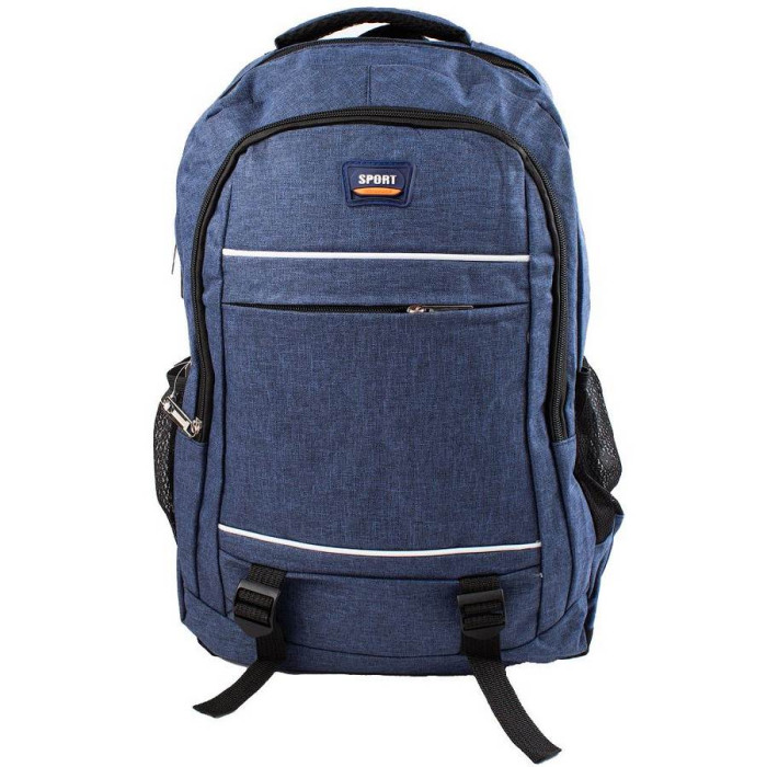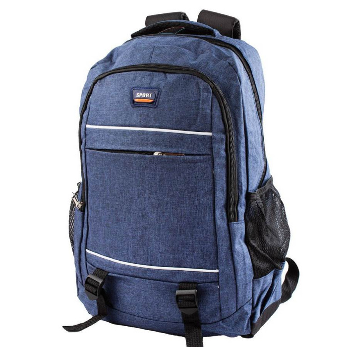 Зовнішні розміри рюкзака: 31 х 45 х 14 см. Обсяг без урахування кишень: 19 л. Вага: 455 м Матеріал: тканина. Колір: синій. Колір фурнітури: срібло. Кількість основних відділень: 2. Всередині є накладна кишеня. Виріб має два бічних накладних кишені. На лицьовій стороні розташована 1 кишеня на блискавці. Плечові лямки мають анатомічну форму. Вони забезпечені щільною підкладкою з поропласту, а їх тильна сторона виконана з сітки 3D airmesh, яка не перешкоджає вільної циркуляції повітря. Довжина лямок може регулюватися за допомогою пластикових пряжок. Спинка виконана з сітчастого матеріалу 3D airmesh. Також виріб має зручну щільну ручку, за допомогою якої аксесуар можна переносити в руці або повісити на гачок або вішалку. Модель має незнімну ручку для перенесення в руці. Рюкзак закривається за допомогою блискавки. Виріб упаковано в поліетиленовий пакет. Документи формату А4 поміщаються в рюкзак. Країна походження торгової марки VALIRIA FASHION і країна-виробник - Китай. Гарантія: 1 місяць.
