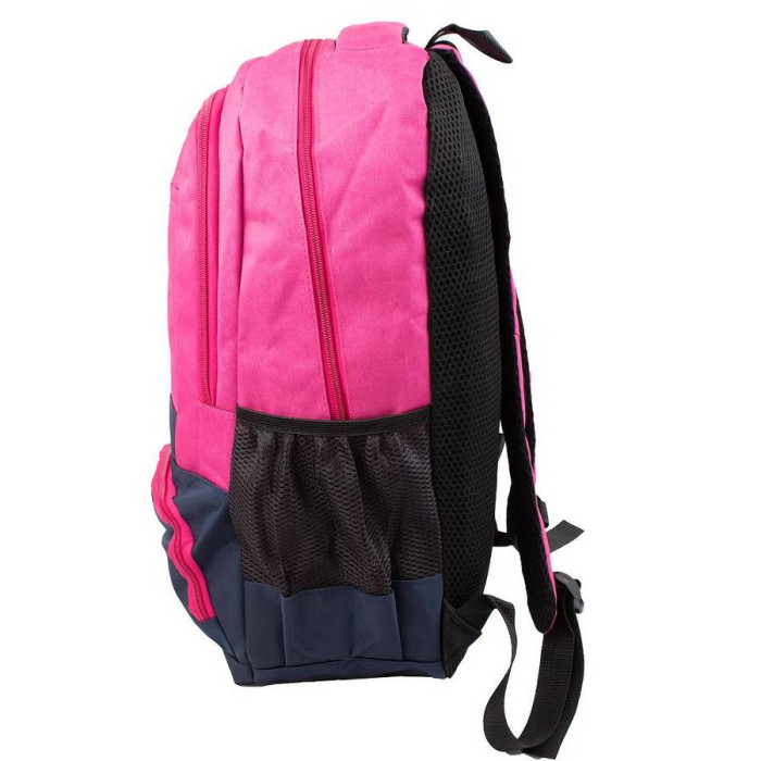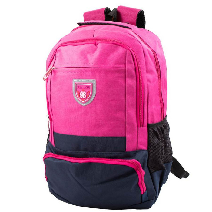 Зовнішні розміри рюкзака: 31 х 45 х 13 см. Обсяг без урахування кишень: 25 л. Вага: 620 г Матеріал: тканина. Колір: малиновий. Колір фурнітури: срібло. Кількість основних відділень: 2. Всередині є накладна кишеня. Виріб має два бічних накладних кишені. На лицьовій стороні розміщено 2 кишені на блискавці. Плечові лямки мають анатомічну форму. Вони забезпечені щільною підкладкою з поропласту, а їх тильна сторона виконана з сітки 3D airmesh, яка не перешкоджає вільної циркуляції повітря. Довжина лямок може регулюватися за допомогою пластикових пряжок. На спинці рюкзака є анатомічні подушки з поролону, обтягнуті сітчастим матеріалом. Також виріб має зручну щільну ручку, за допомогою якої аксесуар можна переносити в руці або повісити на гачок або вішалку. Модель має незнімну ручку для перенесення в руці. Рюкзак закривається за допомогою блискавки. Виріб упаковано в поліетиленовий пакет. Документи формату А4 поміщаються в рюкзак. Країна походження торгової марки VALIRIA FASHION і країна-виробник - Китай. Гарантія: 1 місяць.