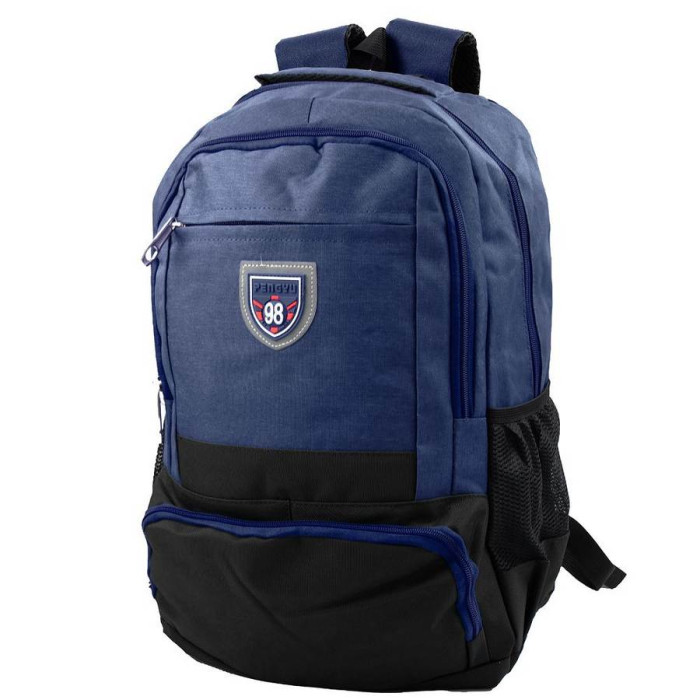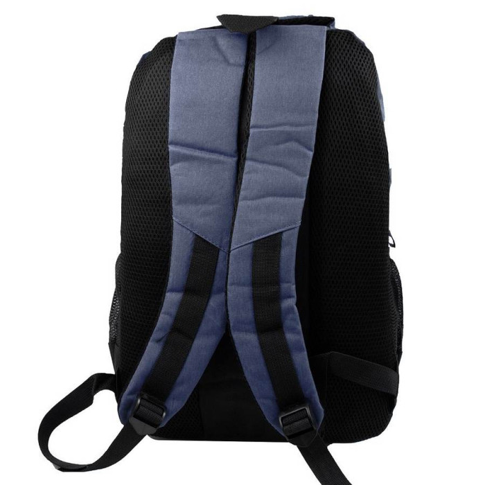 Зовнішні розміри рюкзака: 31 х 45 х 13 см. Обсяг без урахування кишень: 25 л. Вага: 620 г Матеріал: тканина. Колір: синій. Колір фурнітури: срібло. Кількість основних відділень: 2. Всередині є накладна кишеня. Виріб має два бічних накладних кишені. На лицьовій стороні розміщено 2 кишені на блискавці. Плечові лямки мають анатомічну форму. Вони забезпечені щільною підкладкою з поропласту, а їх тильна сторона виконана з сітки 3D airmesh, яка не перешкоджає вільної циркуляції повітря. Довжина лямок може регулюватися за допомогою пластикових пряжок. На спинці рюкзака є анатомічні подушки з поролону, обтягнуті сітчастим матеріалом. Також виріб має зручну щільну ручку, за допомогою якої аксесуар можна переносити в руці або повісити на гачок або вішалку. Модель має незнімну ручку для перенесення в руці. Рюкзак закривається за допомогою блискавки. Виріб упаковано в поліетиленовий пакет. Документи формату А4 поміщаються в рюкзак. Країна походження торгової марки VALIRIA FASHION і країна-виробник - Китай. Гарантія: 1 місяць.