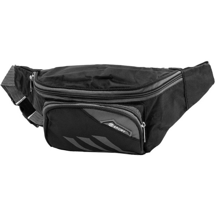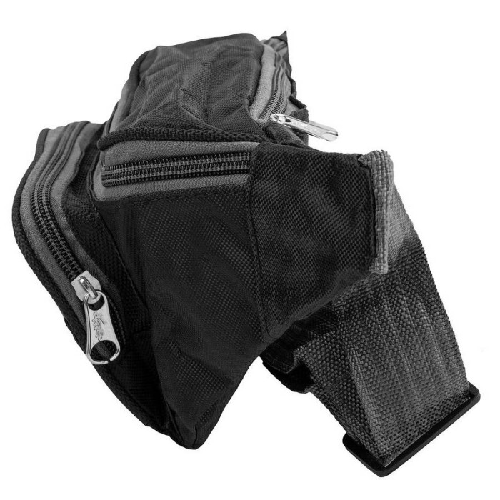 Розміри (X * Y * Z): 34 (максимальна ширина) х 15 х 13 см (замір по верхній частині). Колір: чорний, сірий. Колір фурнітури: срібло. Матеріал підкладки: тканину. Матеріал виробу: тканину. Кількість основних відділень: 1. На лицьовій стороні розташована накладна кишеня на блискавки. На тильній стороні є кишеня на блискавці. Гарантія: 1 місяць. Сумка має незнімний поясний ремінь . Він застібається за допомогою міцної застібки-фастекса. Розмір регулюється. Максимальна довжина ременя 87 см. Аксесуар призначений для носіння на поясі. Сумка закривається за допомогою блискавки. Документи формату А4 не поміщаються в аксесуар. Виріб упаковано в поліетиленовий пакет. Країна походження торгової марки VALIRIA FASHION, також країна-виробник - Китай.