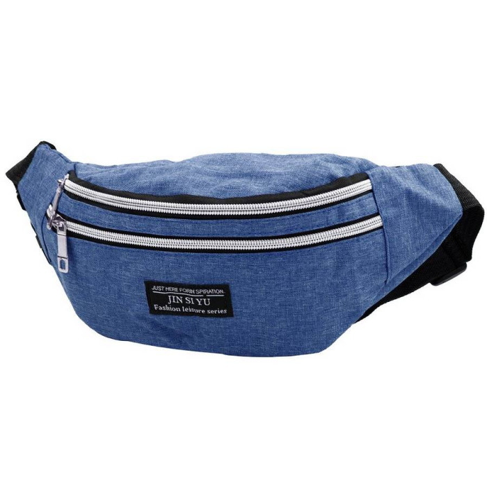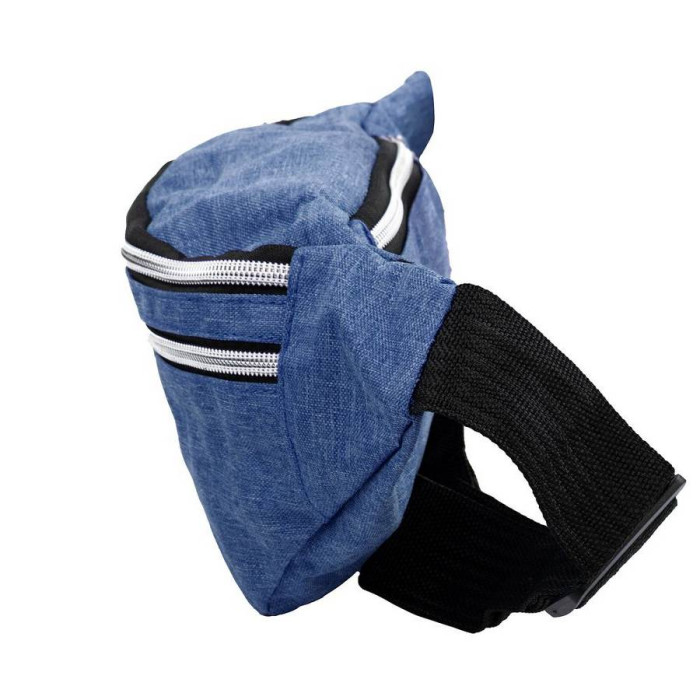 Розміри (X * Y * Z): 31 (максимальна ширина) х 15,5 х 8 (замір по верху) см. Колір: синій. Колір фурнітури: срібло. Матеріал підкладки: тканина. Матеріал виробу: тканина. Кількість основних відділень: 1. На лицьовій стороні розташована 1 кишеня на блискавці. На тильній стороні є кишеня на блискавці. Гарантія: 1 місяць. Сумка має незнімний поясний ремінь . Він застібається за допомогою міцної застібки-фастекса. Розмір регулюється. Максимальна довжина ременя 84 см. Аксесуар призначений для носіння на поясі. Сумка закривається за допомогою блискавки. Документи формату А4 не поміщаються в аксесуар. Виріб упаковано в поліетиленовий пакет. Країна походження торгової марки VALIRIA FASHION, також країна-виробник - Китай.