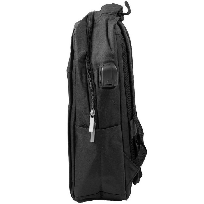 Зовнішні розміри рюкзака: 29 (зверху - 25) х 39 х 12. Обсяг без урахування кишень: 13,5 л. Кількість основних відділень: 1. Всередині є 1 велика накладна кишеня для ноутбука (закривається на хлястик з липучкою), 3 невеликих накладних кишені і органайзер на 2 ручки. Матеріал: тканина. Матеріал підкладки: тканина. Колір: чорний. Колір фурнітури: срібло. Гарантія: 1 місяць. На лицьовій стороні розташована 1 прорізна кишеня на блискавки. У рюкзака є 2 бічних кишені. Рюкзак має зручну щільну ручку для того, щоб переносити виріб в руці, і тканинну петлю, щоб повісити на гачок. Спинка і тильна сторона лямок рюкзака виконані з поропласту, обтягнутого сітчастим матеріалом 3D-airmesh, який не перешкоджає вільної циркуляції повітря. Довжину лямок можна регулювати за допомогою пластикових пряжок. На спинці рюкзака є ремінь для кріплення до ручки валізи. Рюкзак закривається за допомогою блискавки. Виріб упаковано в поліетиленовий пакет. Документи формату А4 поміщаються в рюкзак. Країна походження торгової марки VALIRIA FASHION і країна-виробник - Китай.