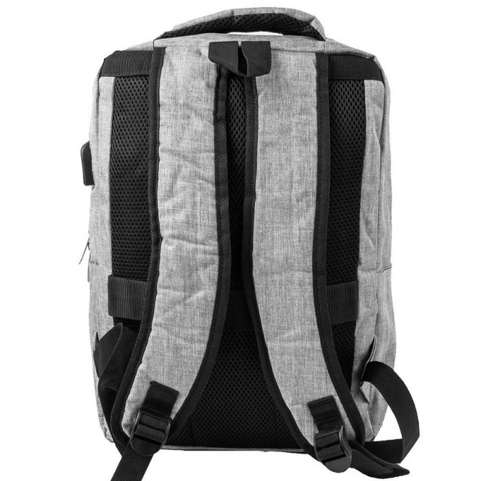 Зовнішні розміри рюкзака: 29 (зверху - 25) х 39 х 12. Обсяг без урахування кишень: 13,5 л. Кількість основних відділень: 1. Всередині є 1 велика накладна кишеня для ноутбука (закривається на хлястик з липучкою), 3 невеликих накладних кишені і органайзер на 2 ручки. Матеріал: тканина. Матеріал підкладки: тканина. Колір: сірий. Колір фурнітури: срібло. Гарантія: 1 місяць. На лицьовій стороні розташована 1 прорізна кишеня на блискавки. У рюкзака є 2 бічних кишені. Рюкзак має зручну щільну ручку для того, щоб переносити виріб в руці, і тканинну петлю, щоб повісити на гачок. Спинка і тильна сторона лямок рюкзака виконані з поропласту, обтягнутого сітчастим матеріалом 3D-airmesh, який не перешкоджає вільної циркуляції повітря. Довжину лямок можна регулювати за допомогою пластикових пряжок. На спинці рюкзака є ремінь для кріплення до ручки валізи. Рюкзак закривається за допомогою блискавки. Виріб упаковано в поліетиленовий пакет. Документи формату А4 поміщаються в рюкзак. Країна походження торгової марки VALIRIA FASHION і країна-виробник - Китай.