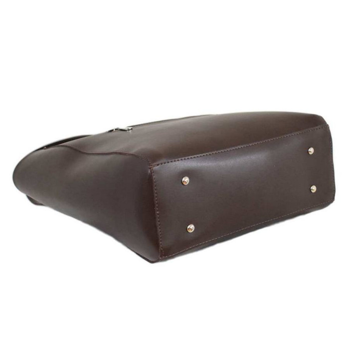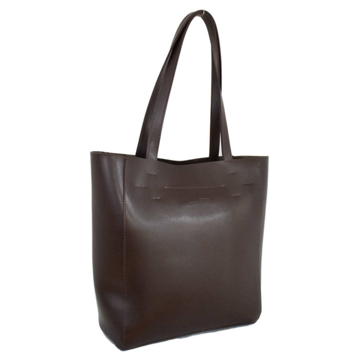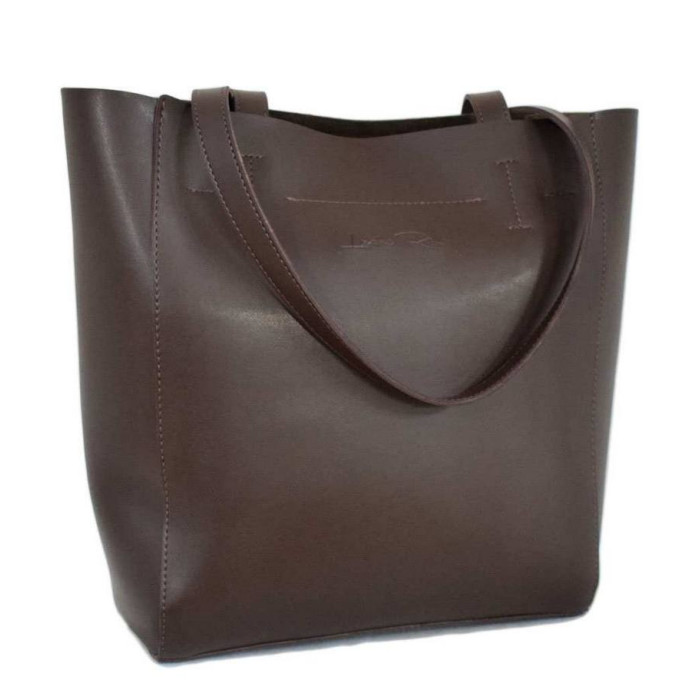 Сумку-шопер, з простим кроєм та мінімальним оздобленням, виконано з шкірозамінника високої якості, щоб її використання було максимально тривалим та приємним. Основна увага акцентується на гарній текстурі шкірзамінника ззовні, який з внутрішньої сторони має оригінальне покриття імітоване під велюр. Сумочка має дві довгі ручки, які розраховані на комфортне транспортування як в руці так і на плечі. Задня стінка оснащена врізною кишенею на застібці. На дні встановлені металеві ніжки. Весь виріб зачиняється на блискавку.