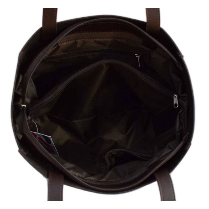 Всередині знаходяться два відділення, які розділяє кишеня-перегородка на застібці. Підкладка для внутрішньої частини виготовляється з якісного міцного текстильного матеріалу. Для більшої зручності та створення порядку в сумці спеціально були розроблені дві відкриті кишені для мобільного телефону та дрібниць, а з протилежного боку потаємна кишеня на застібці.