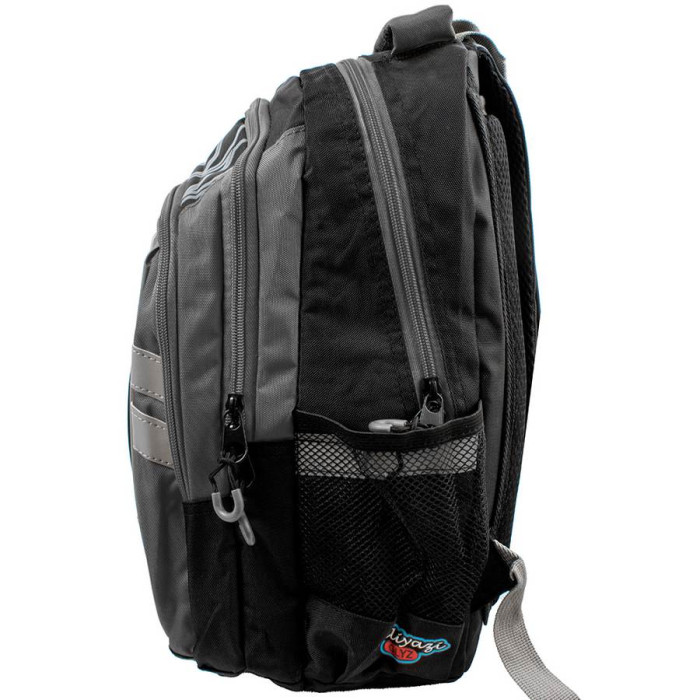 Зовнішні розміри рюкзака: 27 х 38 х 15 см. Обсяг без урахування кишень: 15 л. Вага: 610 р. Матеріал: тканина. Колір: чорний, сірий. Колір фурнітури: чорний. Кількість основних відділень: 3. Всередині є накладна кишеня-сітка. Рюкзак має бічні кишені з сітки. На лицьовій стороні є кишеня на блискавці. Плечові лямки забезпечені щільною підкладою з поропласта, їх тильна сторона виконана з сітчастого матеріалу 3D airmesh, який не перешкоджає вільній циркуляції повітря. Спинка рюкзака ущільнена прошарком з піноматеріалу. Виріб має щільну петлю, за допомогою якої аксесуар можна переносити в руці або повісити на гачок або вішалку, а також зручну м'яку ручку. Рюкзак закривається за допомогою блискавки. Виріб упаковано в поліетиленовий пакет. Документи формату А4 поміщаються в рюкзак. Країна походження торгової марки VALIRIA FASHION і країна-виробник-Китай. Гарантія: 1 місяць.