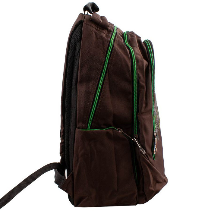 Зовнішні розміри рюкзака: 29 х 41,5 х 20 см. Обсяг без урахування кишень: 23 л. Вага: 720 р. Матеріал: тканина. Колір: коричневий, салатовий. Колір фурнітури: срібло. Кількість основних відділень: 3. Всередині є накладна кишеня-сітка. Рюкзак має бічні кишені на блискавках. Плечові лямки забезпечені щільною підкладою з поропласта, їх тильна сторона виконана з сітчастого матеріалу 3D airmesh, який не перешкоджає вільній циркуляції повітря. Спинка рюкзака ущільнена прошарком з піноматеріалу. Виріб має щільну петлю, за допомогою якої аксесуар можна переносити в руці або повісити на гачок або вішалку, а також зручну м'яку ручку. Рюкзак закривається за допомогою блискавки. Виріб упаковано в поліетиленовий пакет. Документи формату А4 поміщаються в рюкзак. Країна походження торгової марки VALIRIA FASHION і країна-виробник-Китай. Гарантія: 1 місяць.