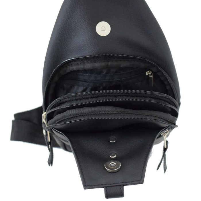 Стильна та практична сумочка виготовлена з високоякісного шкірозамінника, текстильної підкладки та надійної фурнітури. Модель з двома відділеннями, які зачиняються на окрему блискавку та додатково фіксуються на загальну магнітну кнопку. Передня стінка декорована функціональною вмісткою кишенею на блискавці. На задній стінці також знаходиться врізна кишеня.