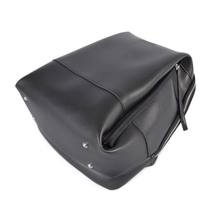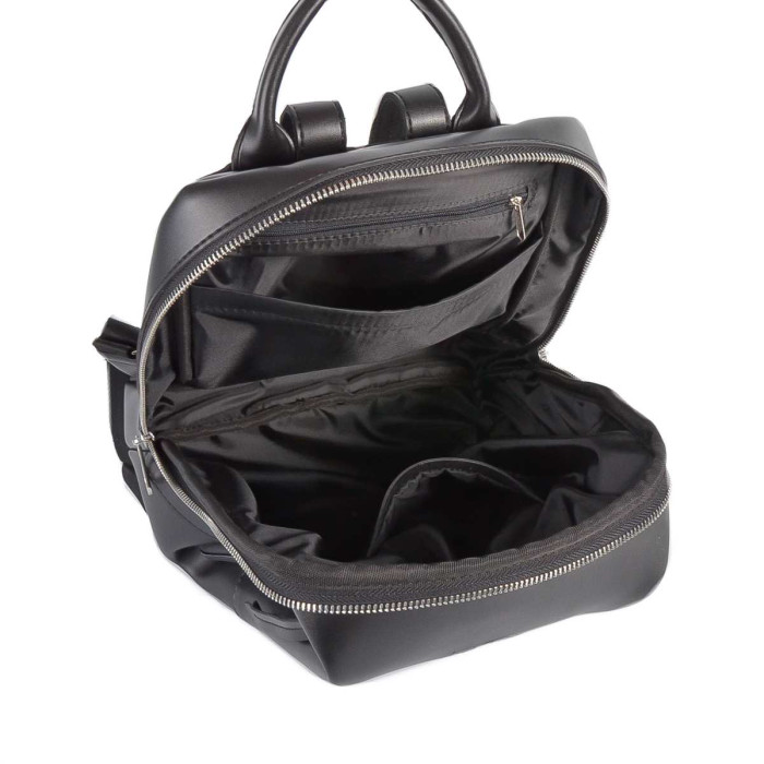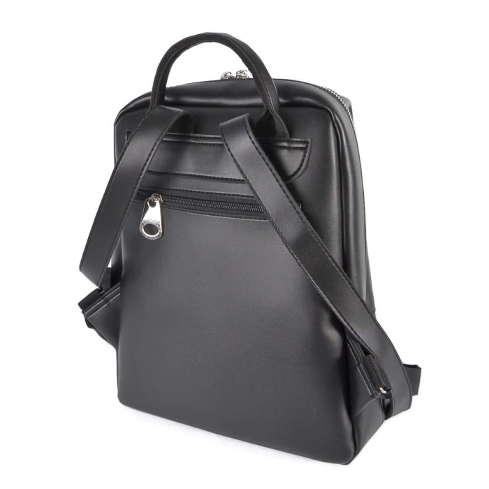 Виготовлений з шкірзамінника високої якості.Рюкзак має одне основне відділення, яке зачинається на металеву блискавку. Вертикально розташовані кишені на передній зовнішній стінці, дуже зручна та практична у використанні, максимально підкреслять оригінальний дизайн. Ремінці використовуються з текстильної міцної стропи та регулюються під бажаний розмір.
