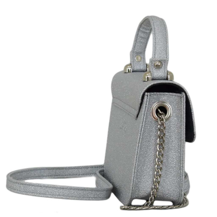 Сумка виготовляється зі шкірозамінника високої якості, який найкраще зарекомендував себе у використанні. Стінки гарно тримають форму виробу, а спеціально вмонтовані металеві ніжки захищатимуть від пошкоджень. Фурнітура як завжди на висоті і в даній моделі використана в кольорі - нікель. До комплекту входить довгий ремінець, який регулюється і при необхідності кріпиться металевими карабінами до півкільць з кожного боку сумки.