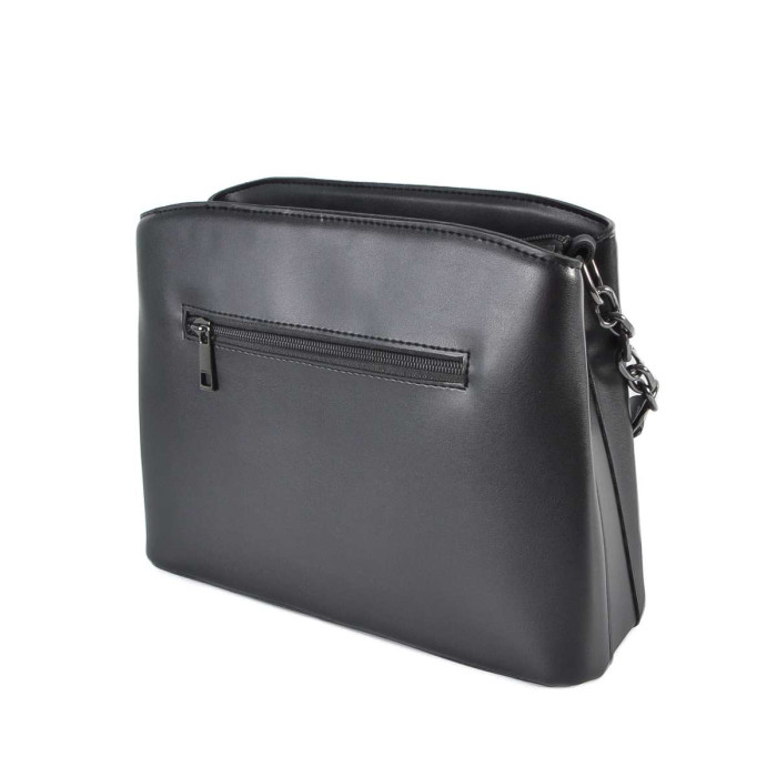 Сумка виготовляється зі шкірозамінника високої якості, який найкраще зарекомендував себе у використанні. Стінки гарно тримають форму виробу, а спеціально вмонтовані металеві ніжки захищатимуть від пошкоджень. Фурнітура як завжди на висоті і в даній моделі використана в кольорі - нікель. До комплекту входить довгий ремінець, який регулюється.