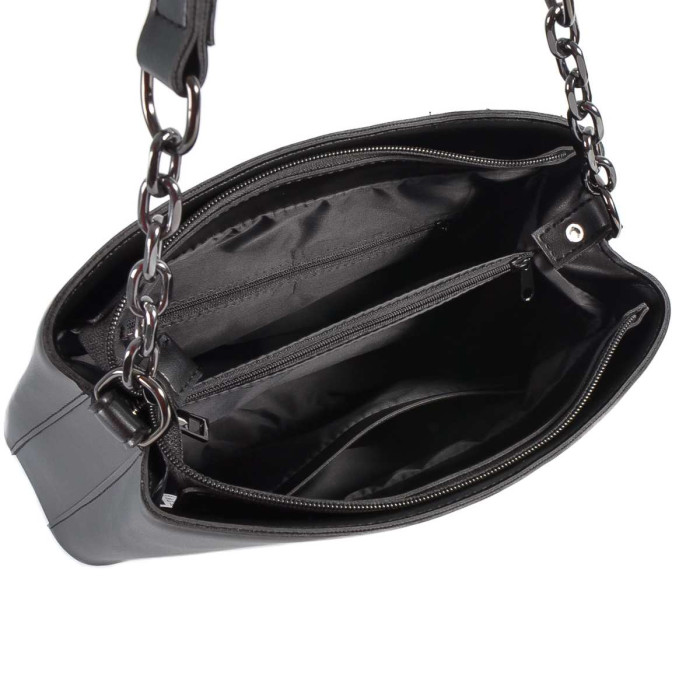 Всередині одне відділення розділене кишенею перегородкою на блискавці. Для комфортного розміщення дрібниць вмонтована відкрита кишенька та одна потайна на застібці.