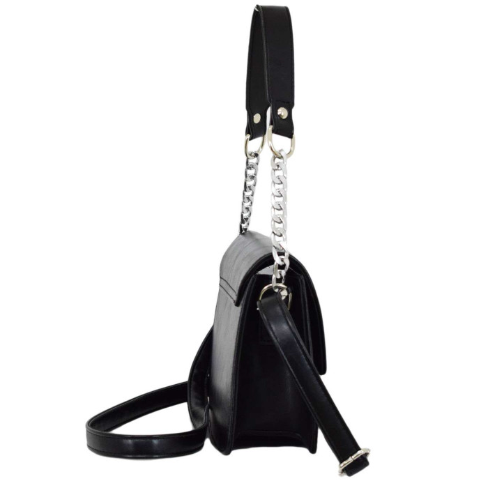 Сумка виготовляється зі шкірозамінника високої якості, який найкраще зарекомендував себе у використанні. Стінки гарно тримають форму виробу, а спеціально вмонтовані металеві ніжки захищатимуть від пошкоджень. Фурнітура як завжди на висоті і в даній моделі використана в кольорі - нікель. До комплекту входить довгий ремінець, який регулюєтьсяі короткий не регульований на ланцюжку.