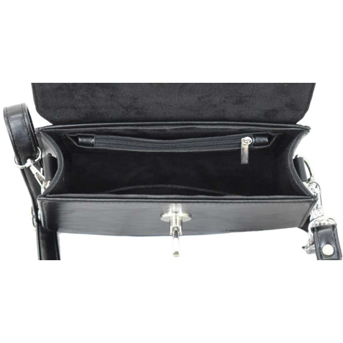Всередині одне відділення. Для комфортного розміщення дрібниць вмонтована відкрита кишенька та одна потайна на застібці.