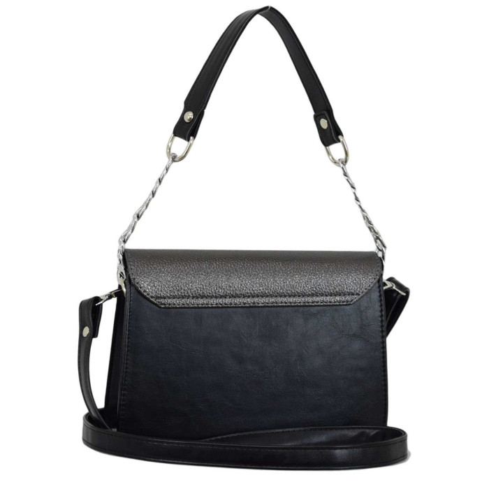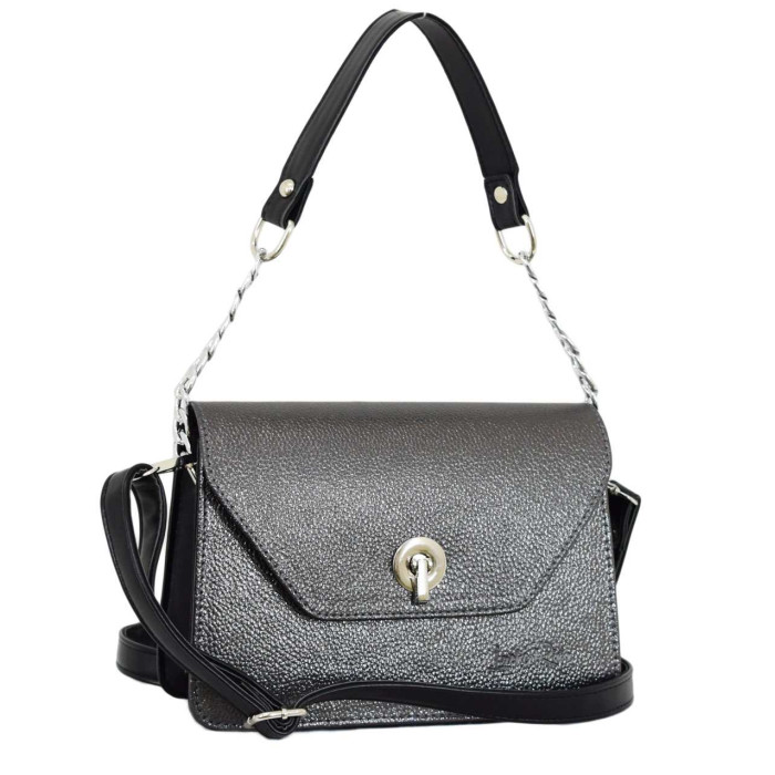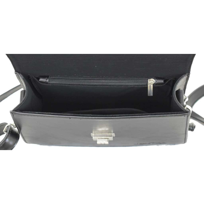 Сумка виготовляється зі шкірозамінника високої якості, який найкраще зарекомендував себе у використанні. Стінки гарно тримають форму виробу, а спеціально вмонтовані металеві ніжки захищатимуть від пошкоджень. Фурнітура як завжди на висоті і в даній моделі використана в кольорі - нікель. До комплекту входить довгий ремінець, який регулюєтьсяі короткий не регульований на ланцюжку.