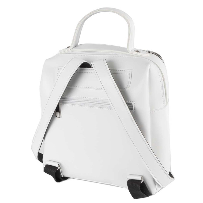 Рюкзак має два відділення, які застібаються блискавками та розділені між собою. Також є додаткова горизонтально розташована кишенька на задній зовнішній стінці. Ремінці регулюються під бажаний розмір.