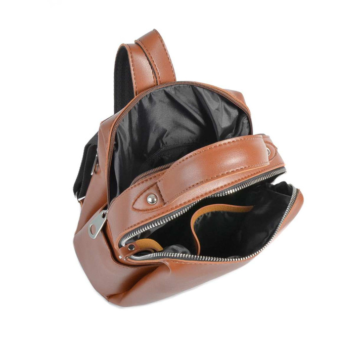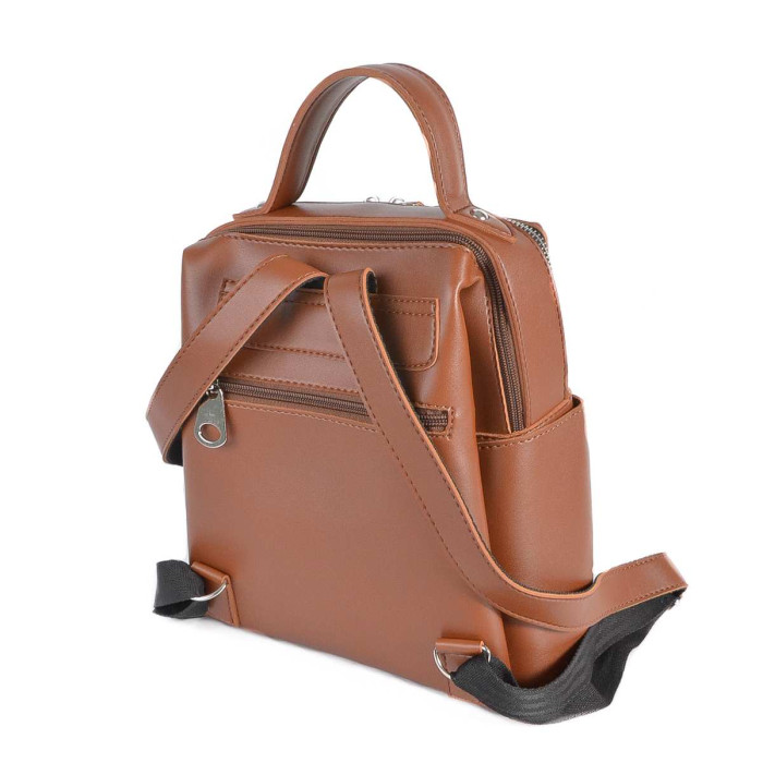 Рюкзак має два відділення, які застібаються блискавками та розділені між собою. Також є додаткова горизонтально розташована кишенька на задній зовнішній стінці. Ремінці регулюються під бажаний розмір.
