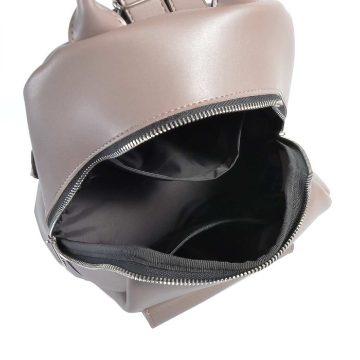 Підкладка рюкзака виготовляється із цупкого текстилю. Всередині розміщена потаємні кишені на блискавці та відкриті кишені для дрібниць. Для більшого комфорту на задній стінці також вмонтували приховану врізну горизонтальну кишеньку.