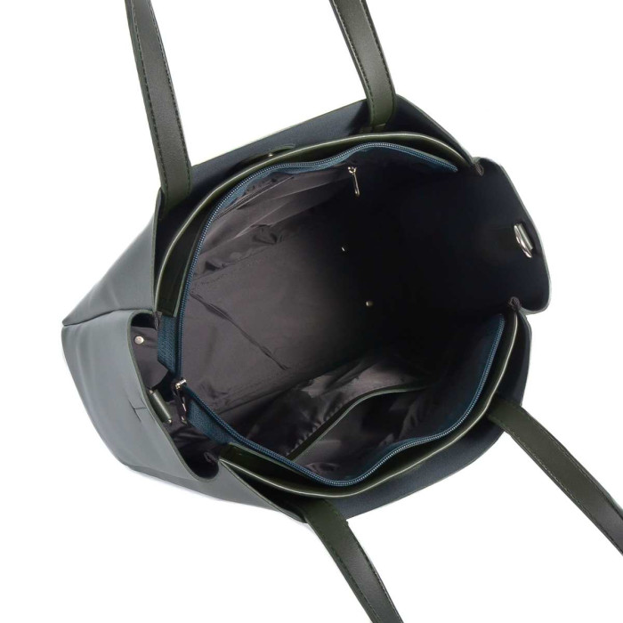 На вигляд сумочка дуже проста та мінімалістична. Як раз підійде для прихильників стриманості та виваженості в образі. Родзинка моделі полягає в її цікаво зроблених трьох відділеннях. Основне і найбільше, з додатковими кишеньками для телефону та дрібничок, застібається на блискавку. Інші два відділення, розміщенні попереду та позаду, — на магнітні кнопки. В них дуже комфортно покласти речі, які часто використовуєте впродовж дня. В комплекті йде довгий ремінець.